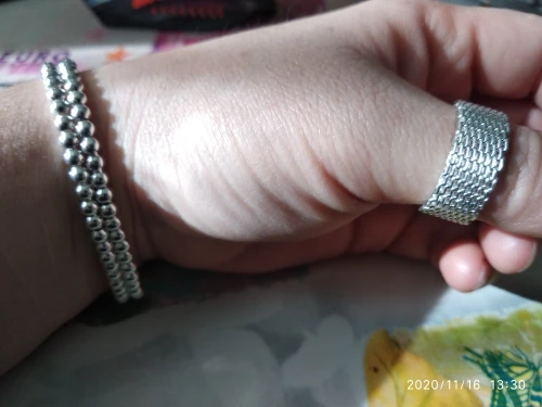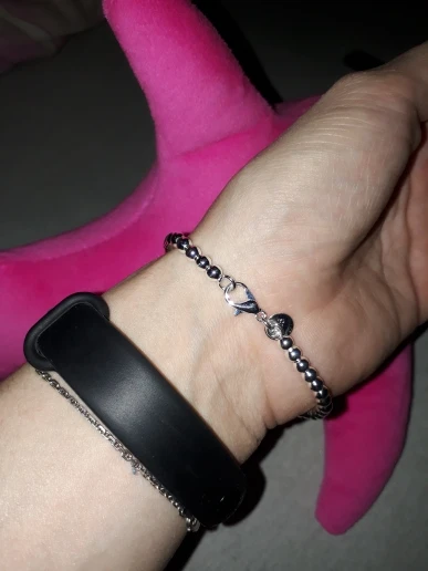 Все как и описывали ранее - супер. Если у вас крупные кости, то мой размер может быть совсем впритык, берите длиннее. Рекомендую! На фото смиксовала с другими браслетами.