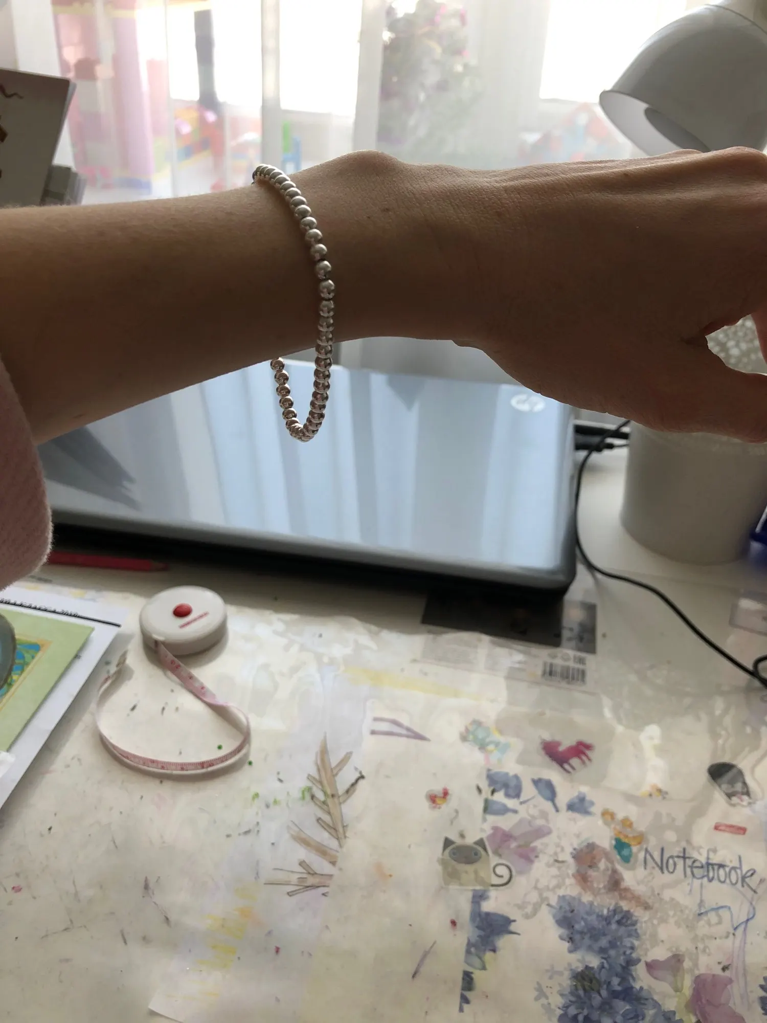 Очень красивый браслет. Пришёл довольно быстро. Смотрится на руке нежно, блестит. Теперь ношу не снимая.