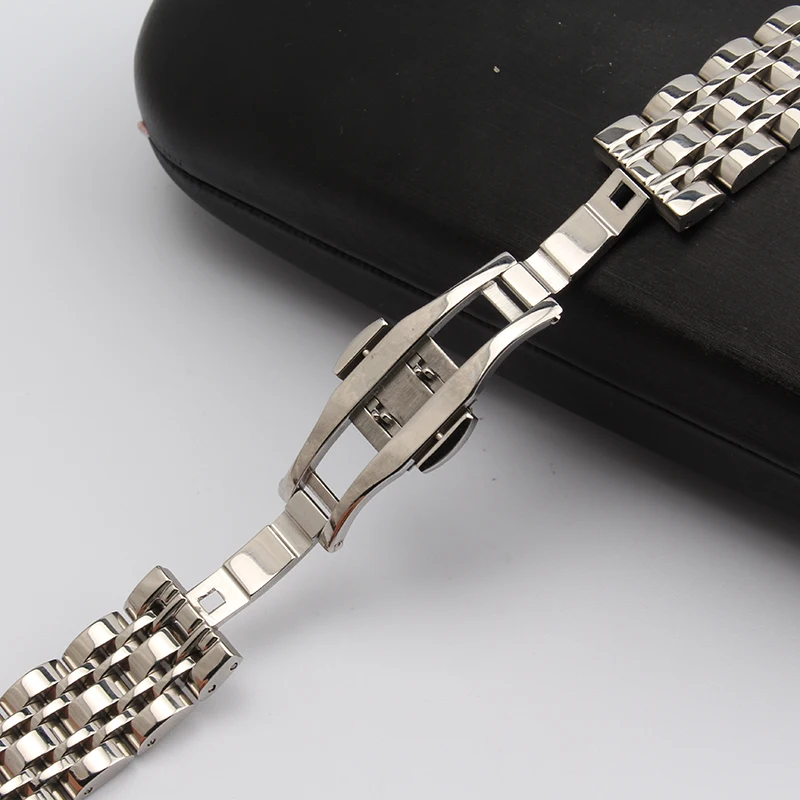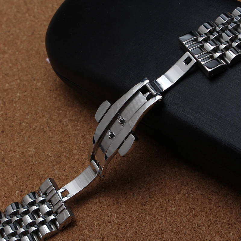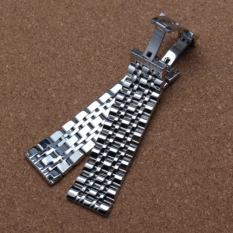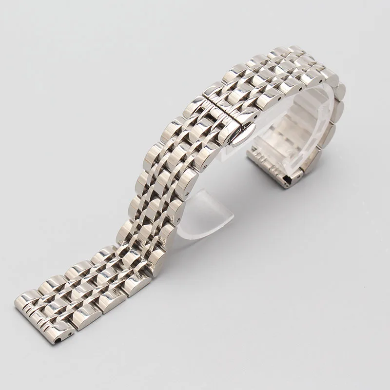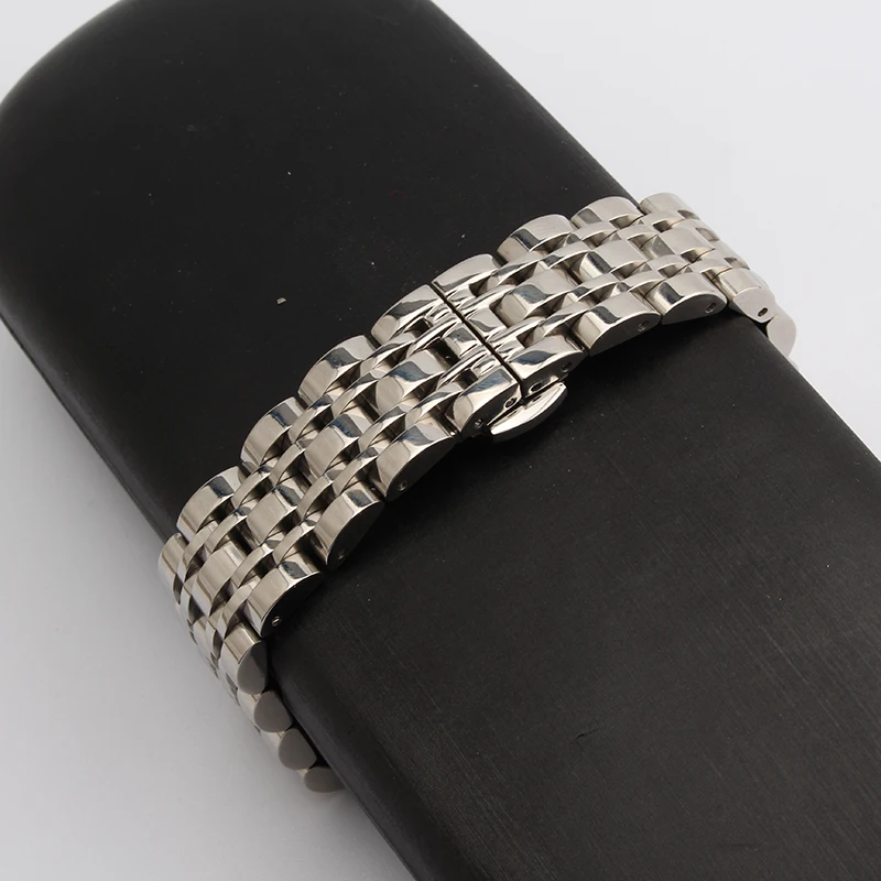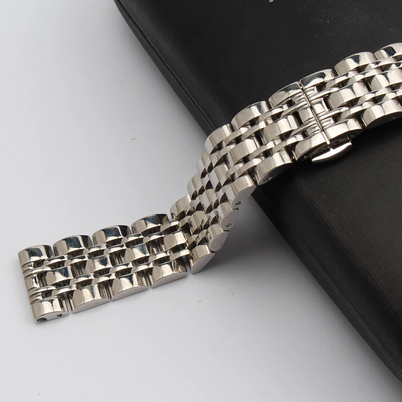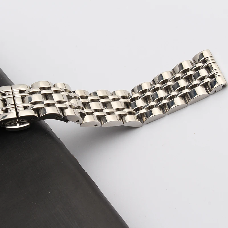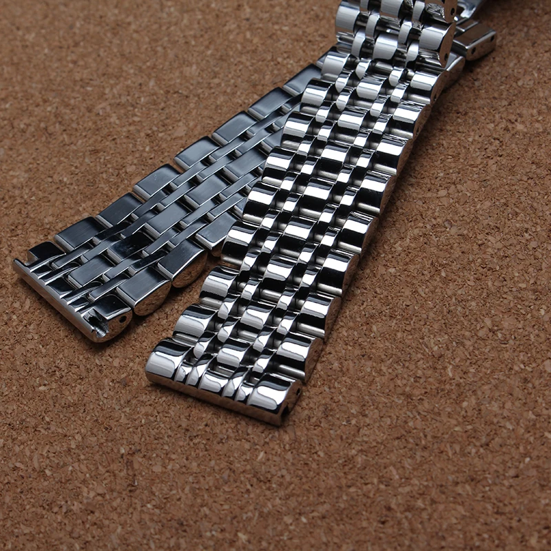 Ремешок из нержавеющей стали для мужских часов, полированный Серебристый браслет с 7 бусинами, 14 мм 16 мм 18 мм 20 мм 22 мм