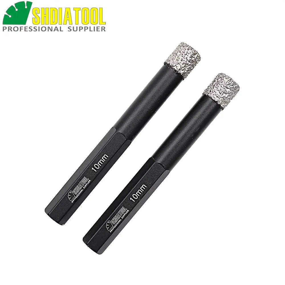 Алмазные сверла SHDIATOOL, 2 шт., диаметр 10 мм, с сухой вакуумной пайкой, для камня, фарфораплитки, сверла с шестигранным хвостовиком