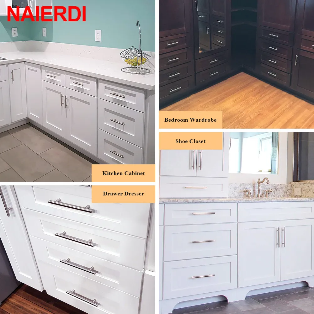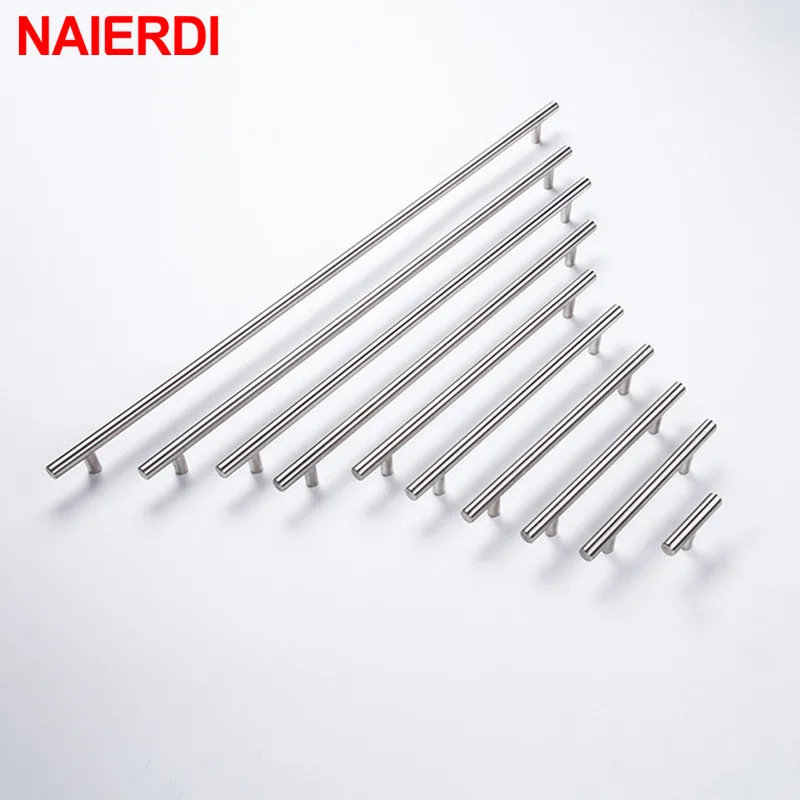 Ручка для шкафа NAIERDI из нержавеющей стали, 2-24 дюйма, диаметр 10 мм, Т-образная прямая ручка для кухонной двери, мебельная фурнитура