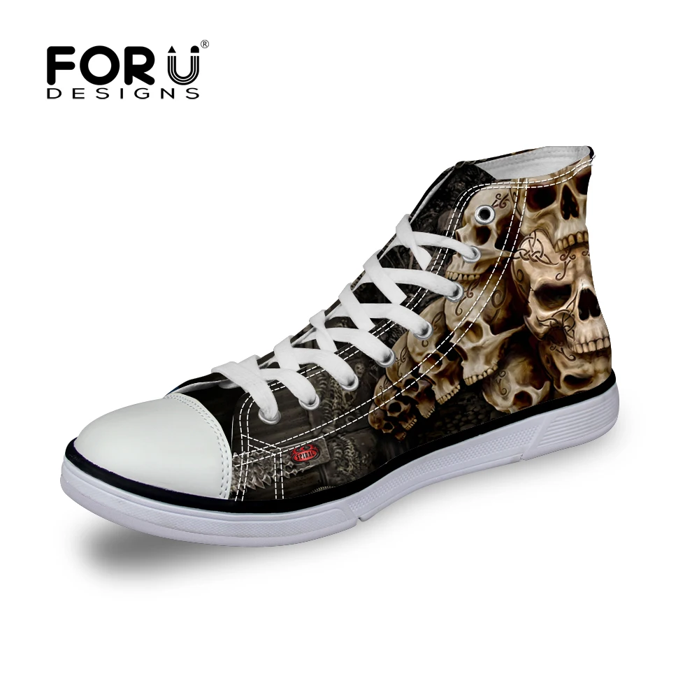 Туфли FORUDESIGNS мужские высокие, холщовые дышащие, винтажная Вулканизированная подошва, с 3D-принтом черепа, повседневные, для подростков, мальчиков, студентов, плоская подошва, летние
