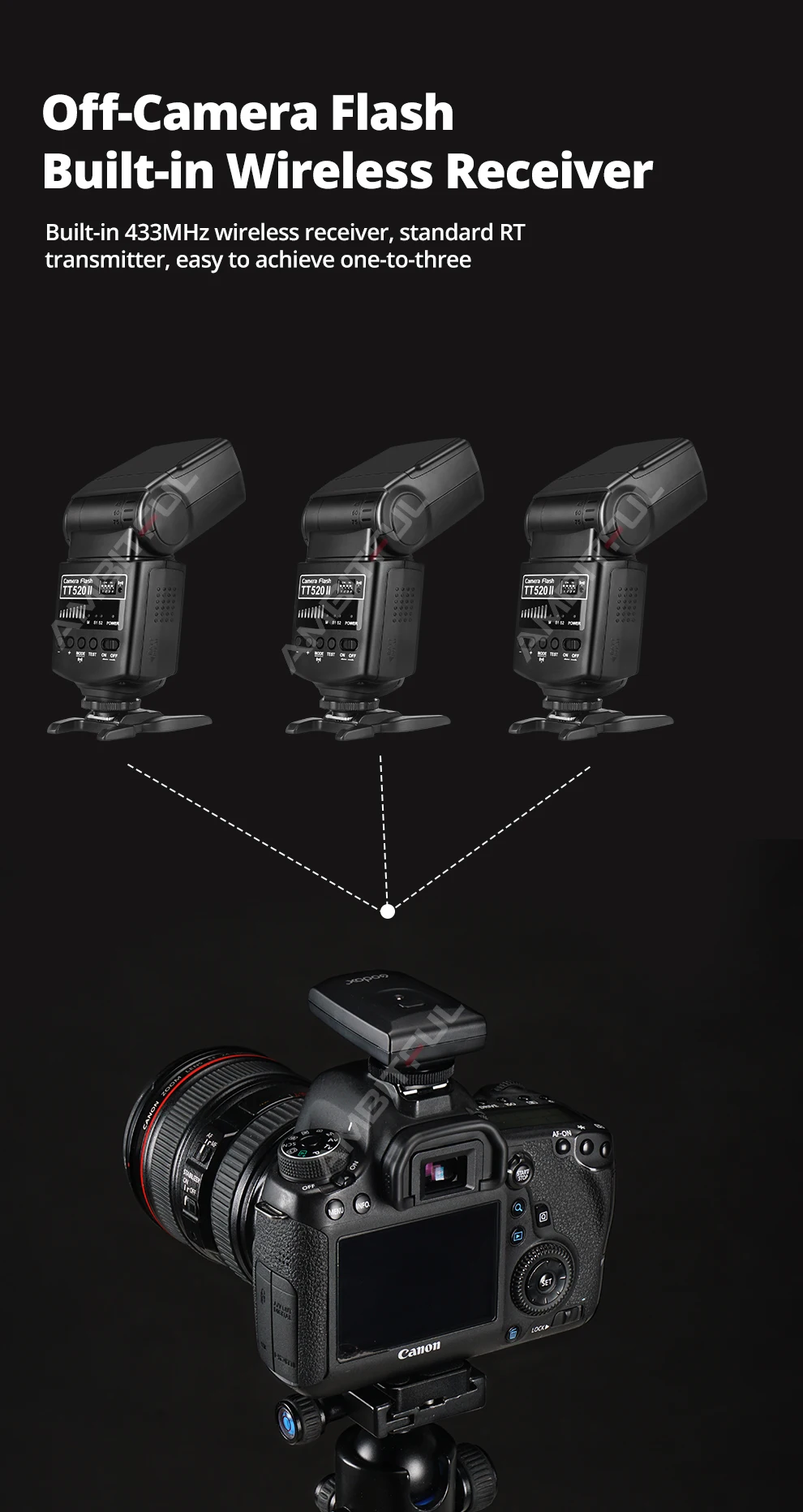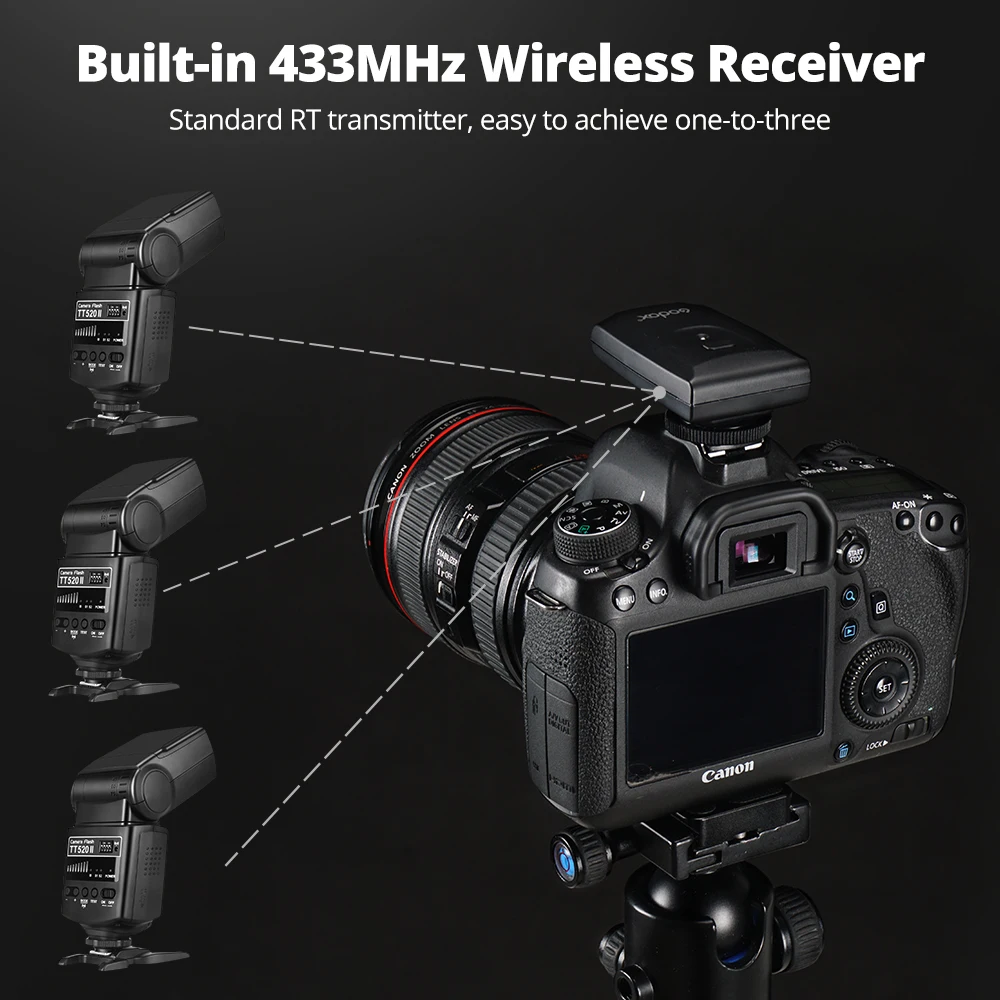 Вспышка для камеры Godox Thinklite TT520II со встроенным беспроводным сигналом 433 МГц для цифровых зеркальных камер Canon Nikon Pentax Sony Fuji Olympus s