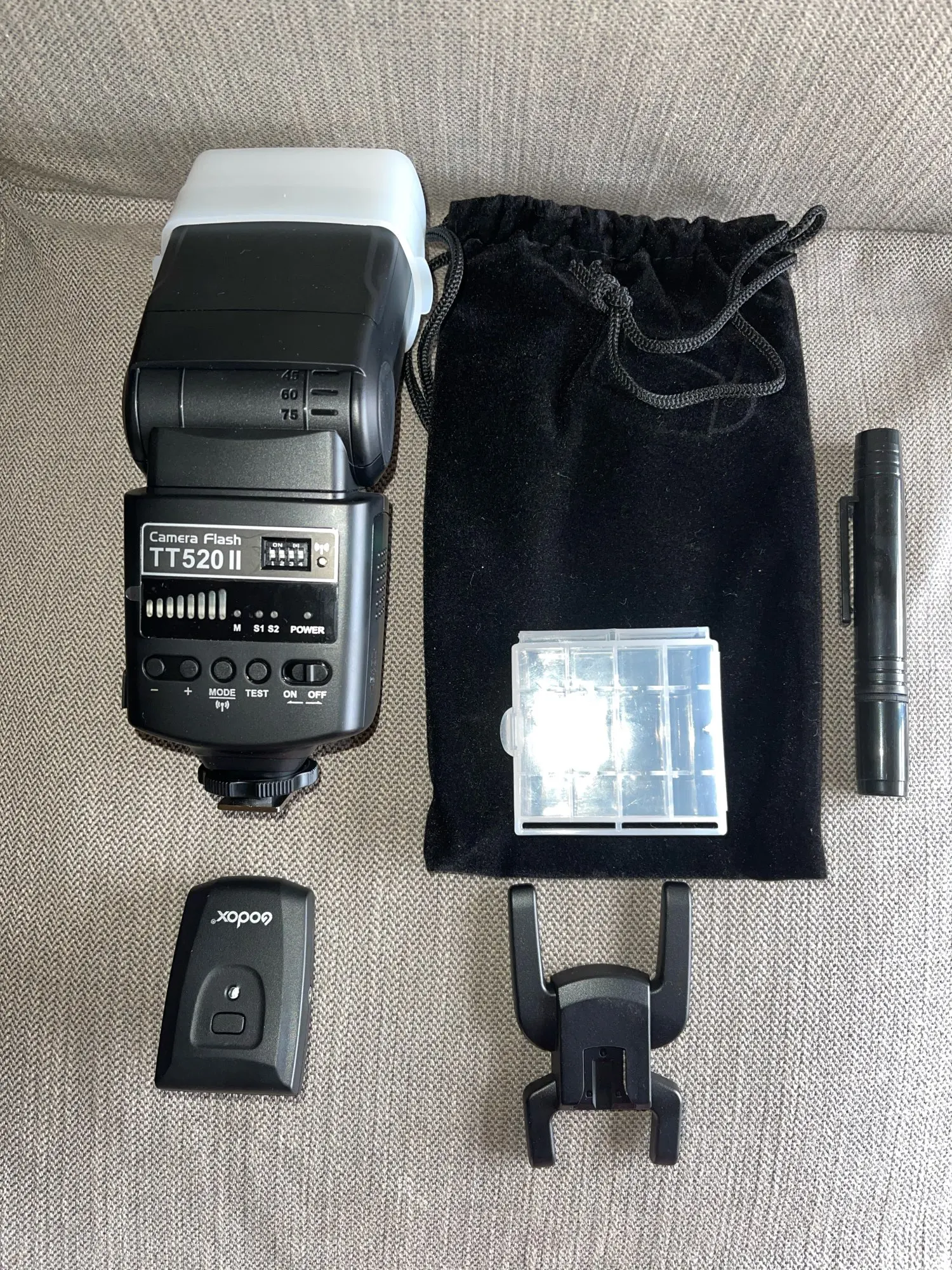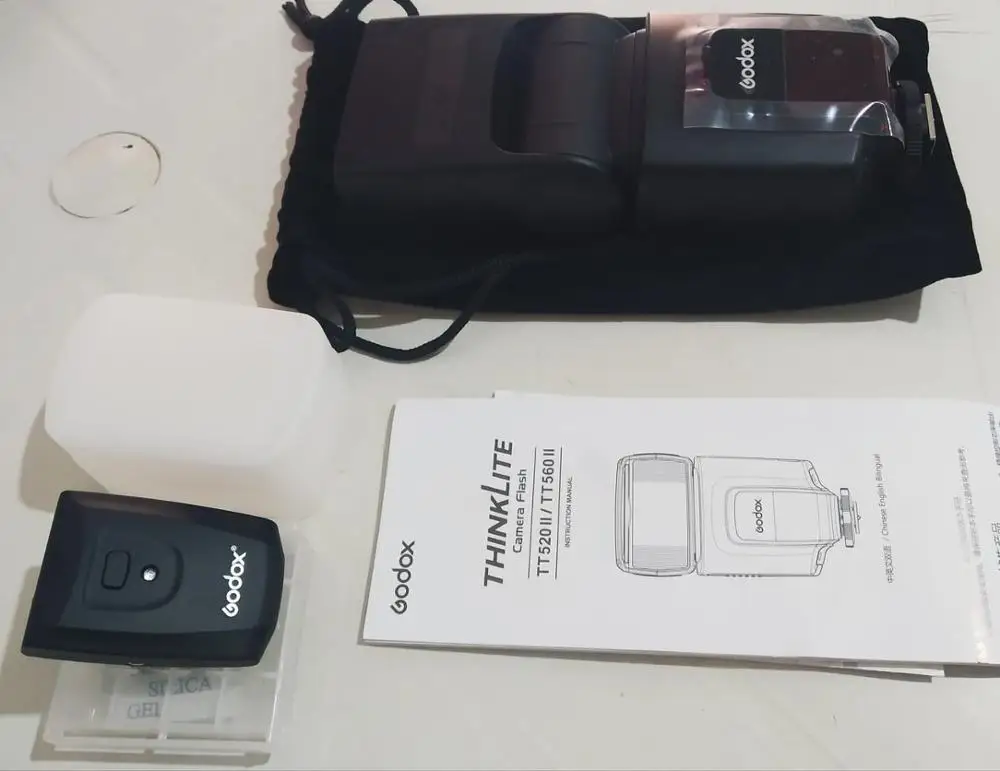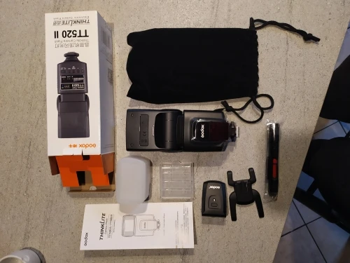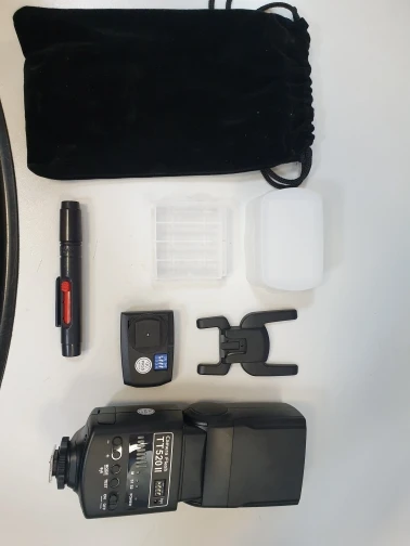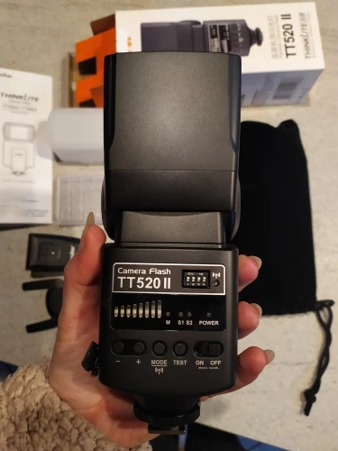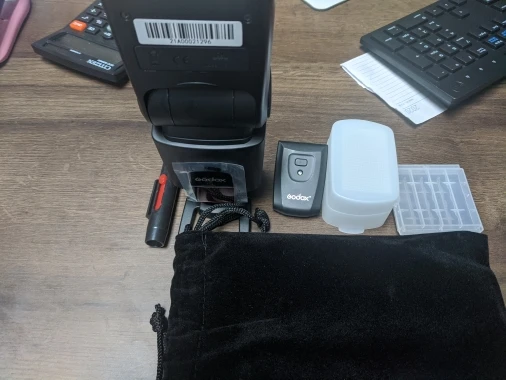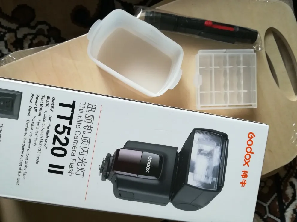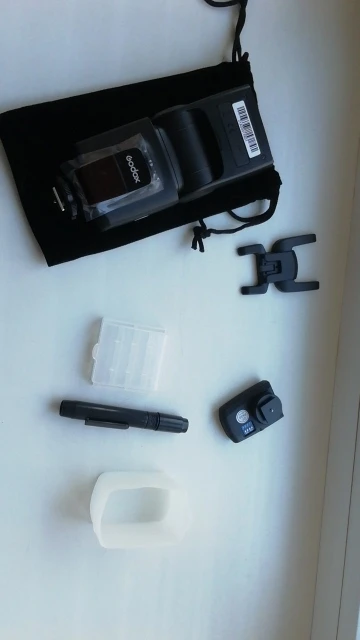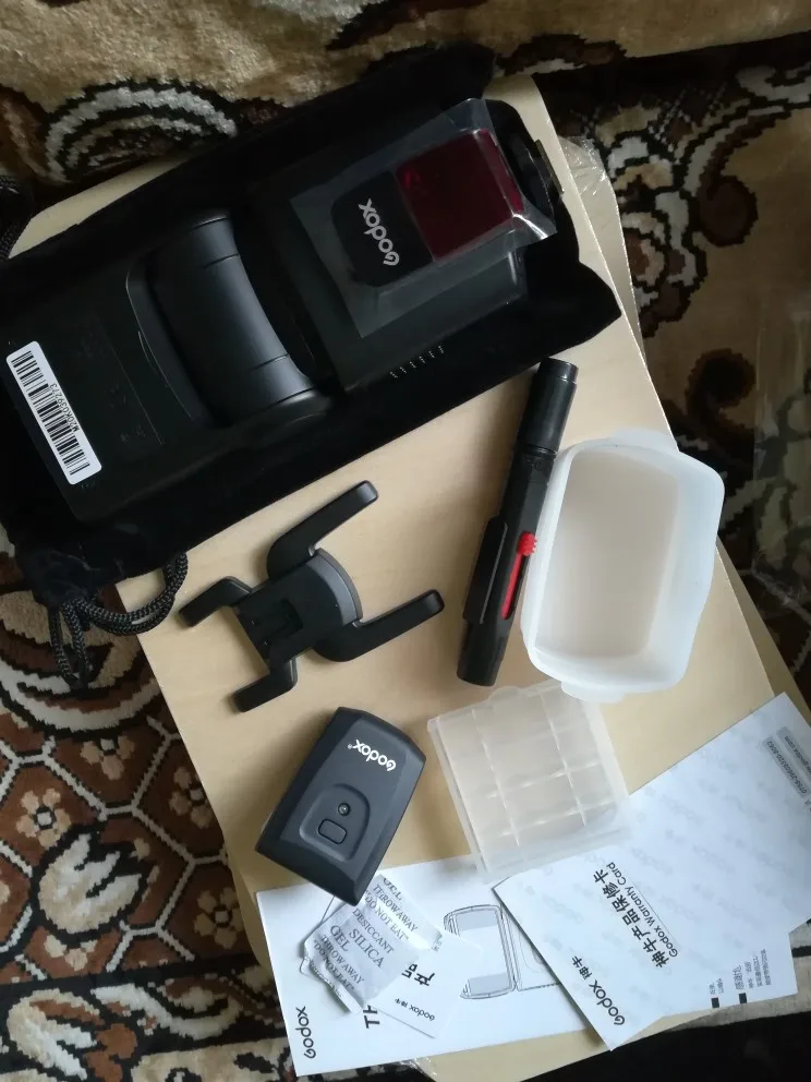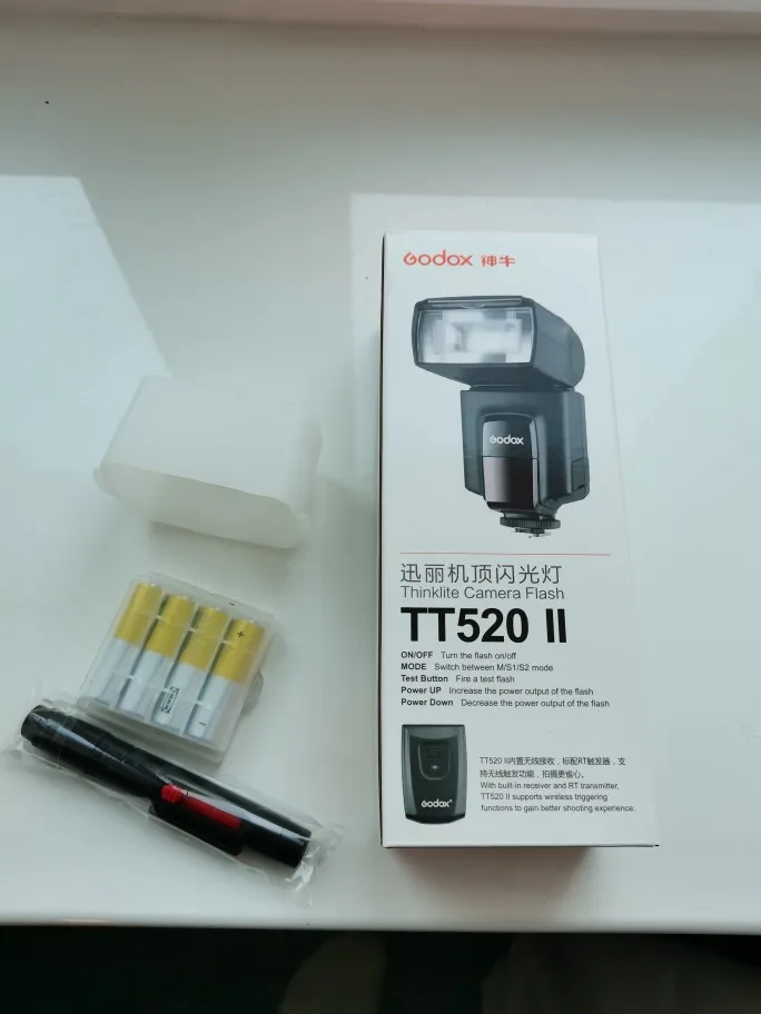 Отличная вспышка для камеры. Он изготовлен очень высокого качества и отлично работает. Батарея ror передатчик включен. В качестве бонуса была бархатная сумка, коробка для небольших вещей (таких как флеш-накопители), диффузор и карандаш для очистки.