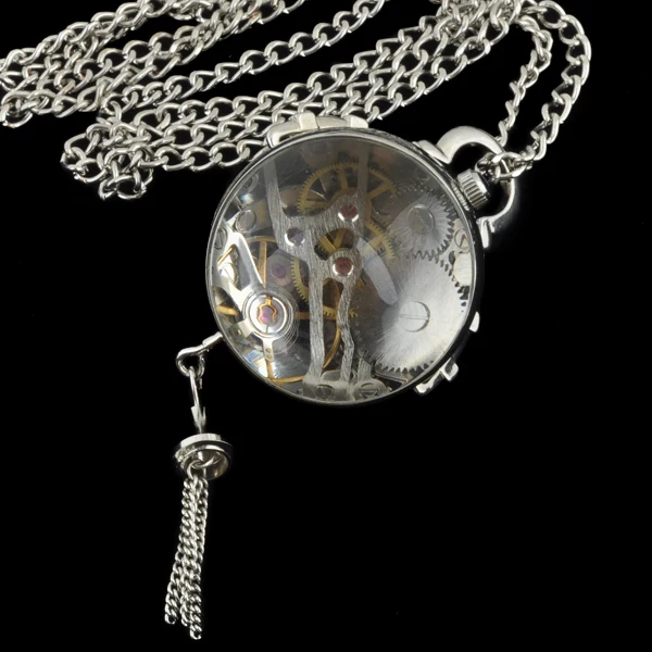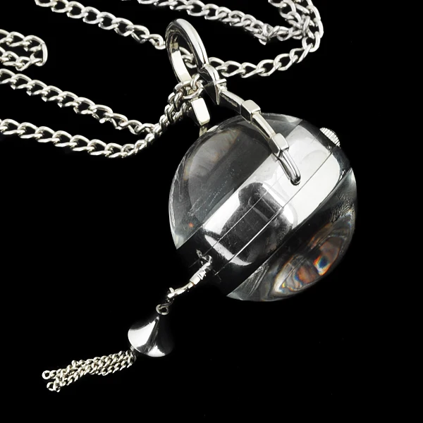 Новый прозрачный стеклянный серебряный шар в стиле стимпанк Механические карманные часы цепочка кулон ожерелье для женщин