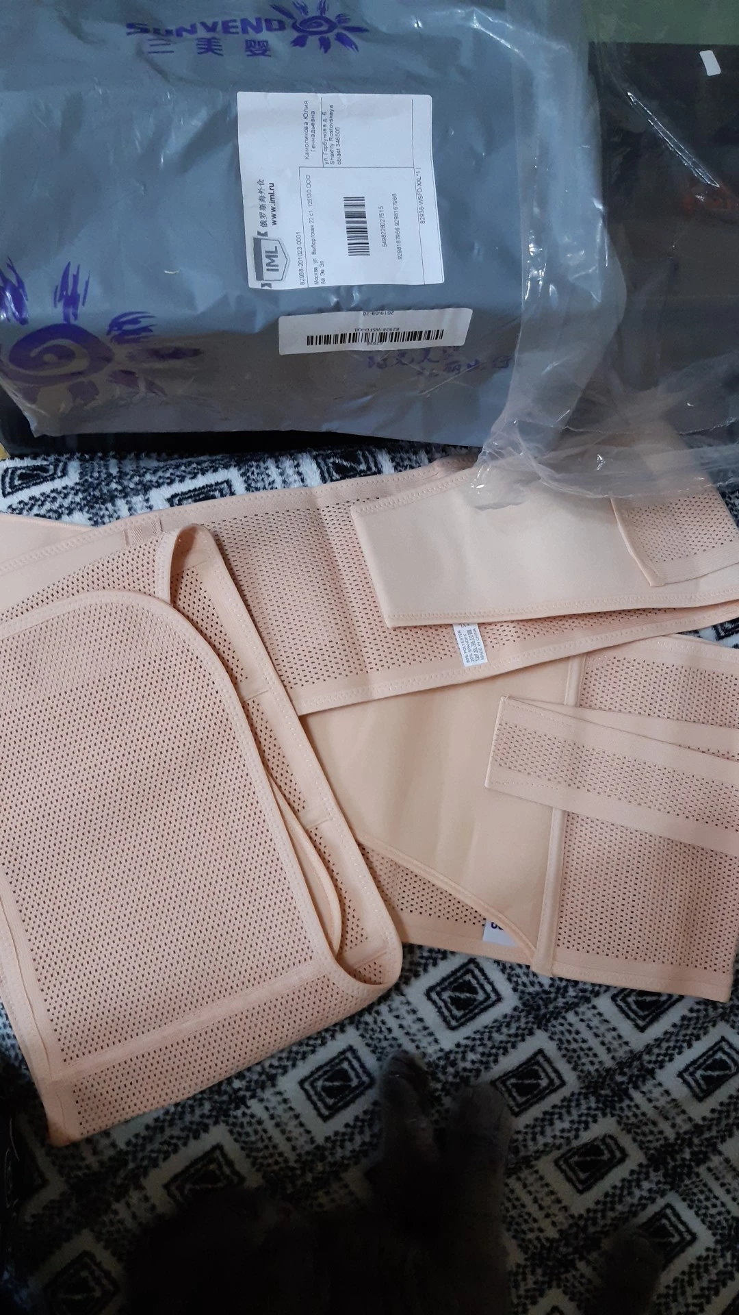 Товар отличного качества цвет больше персиковый нежели беж. Прикинула после родов должен хорошо сесть и все подтянуть, размеру соответствует. Одну из частей можно носить во время беременности. Продавец положил подарок небольшой матрасик не промокаемый. Как рожу дополню отзыв. Пока все понравилось