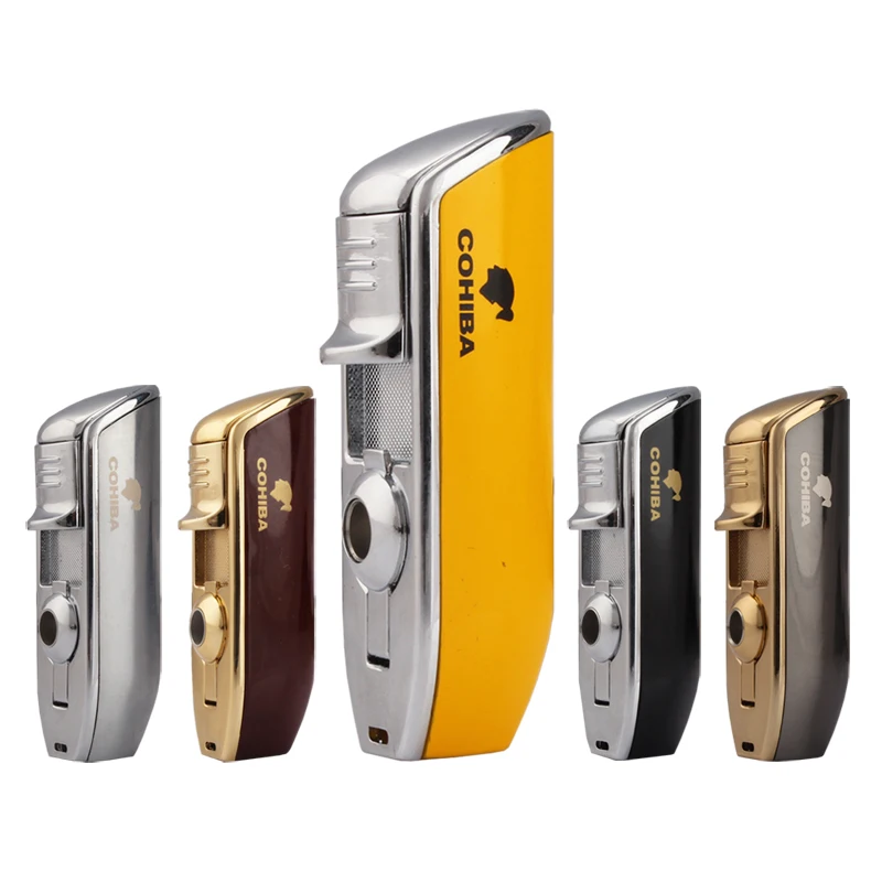Металлическая ветрозащитная Зажигалка COHIBA в форме змеи и рта, 3 факфонарь, струйное пламя, сигарета, со встроенным дыроколом для сигар, с подарочной коробкой