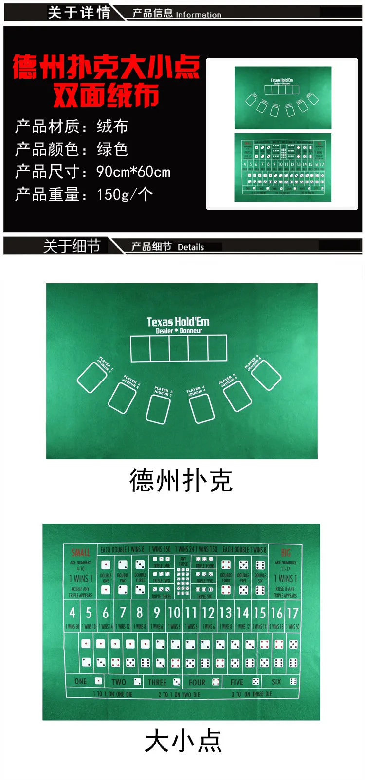 Новый двухсторонний 60*90 см 5 игроков баккара покерный набор фишес покер техасский холдем покерный стол ткань Fietro войлочная доска тканьИз-за причин измерения, на самом деле есть небольшая погрешность. Из-за того, что светильник является причиной, в реальных товарах есть разные цвета.Пожалуйста, поймите, спасибо!Наслаждайтесь игрой ~.