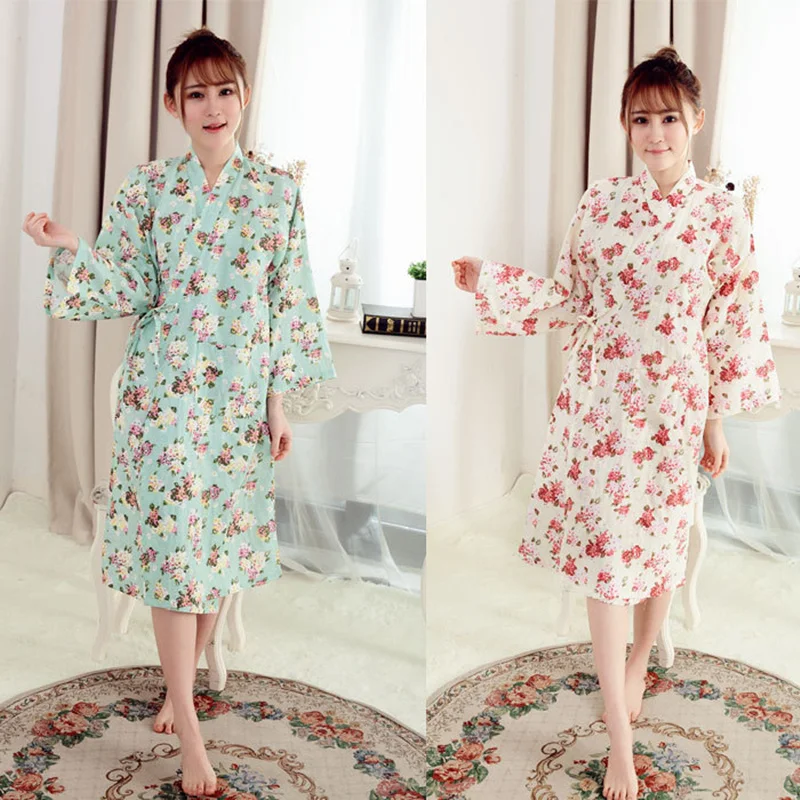 Халат-кимоно Женский с цветочным принтом, банный халат из хлопка, юката, летняя Пижама