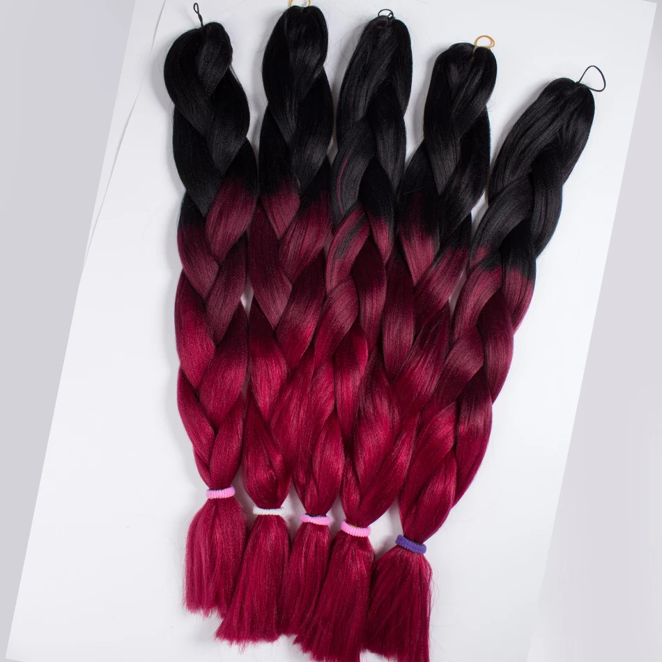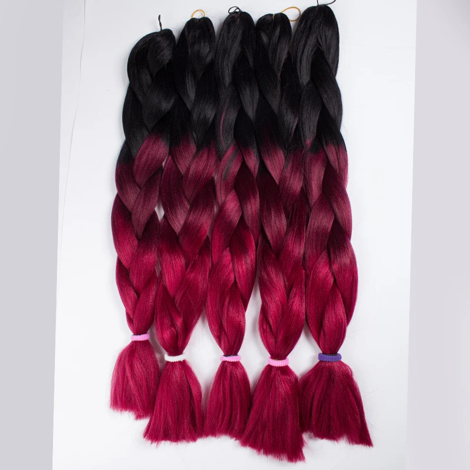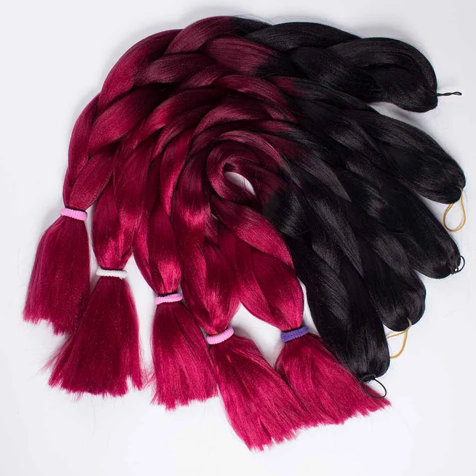 Волосы QP 24 дюйма, 100 г, Омбре, коричнево-красные, трехцветные, высокотемпературное волокно, крупная коса, синтетические, вязаные крючком волосы