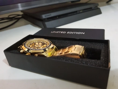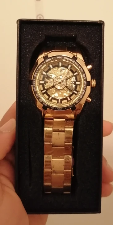 Часы красивые, они такие же, как описано, он чувствует себя Премиум, но цепочка низкого качества заняла около 50 дней, чтобы прибыть, он был застревает на таможне, наконец, получил его в целом доволен и доволен продуктом и продавцом