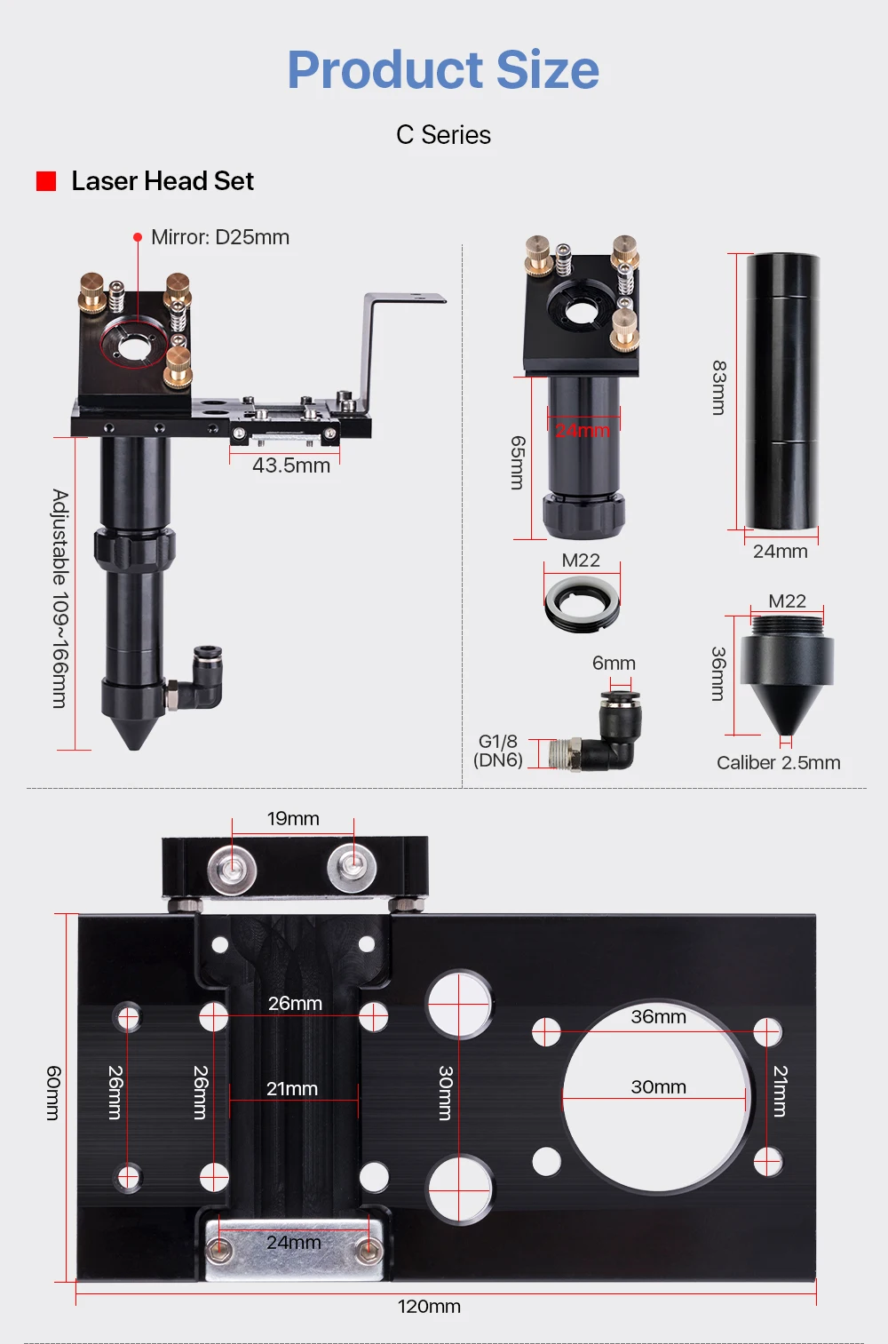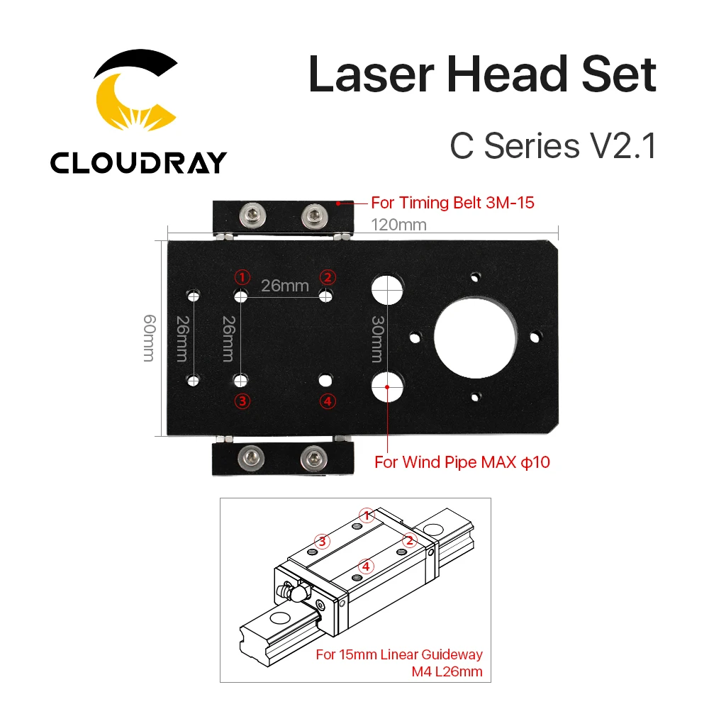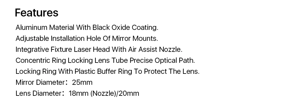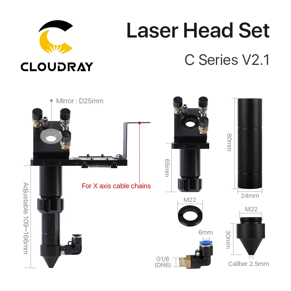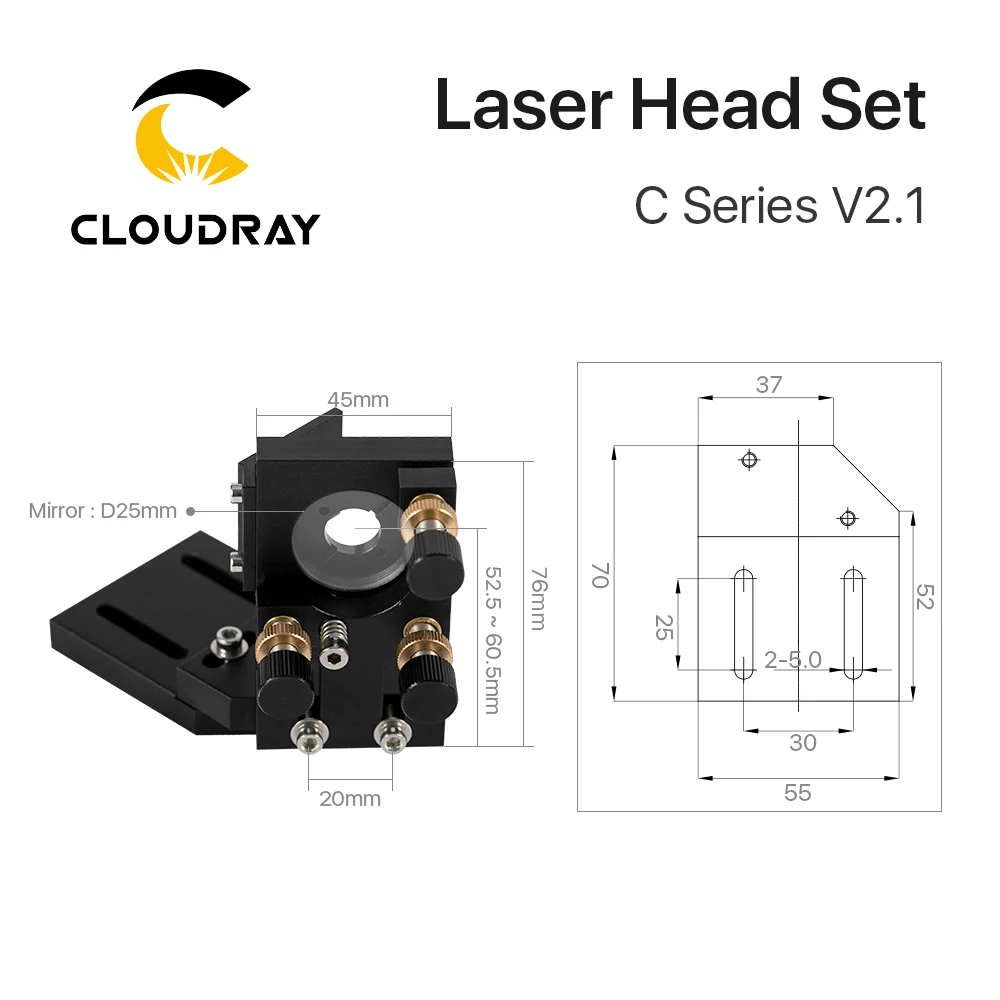 Лазерная головка Cloudray CO2, набор линз D18 FL38.1 D20FL50.863,5101,6 мм, встроенное крепление, зеркало Dia25 для лазерной резки