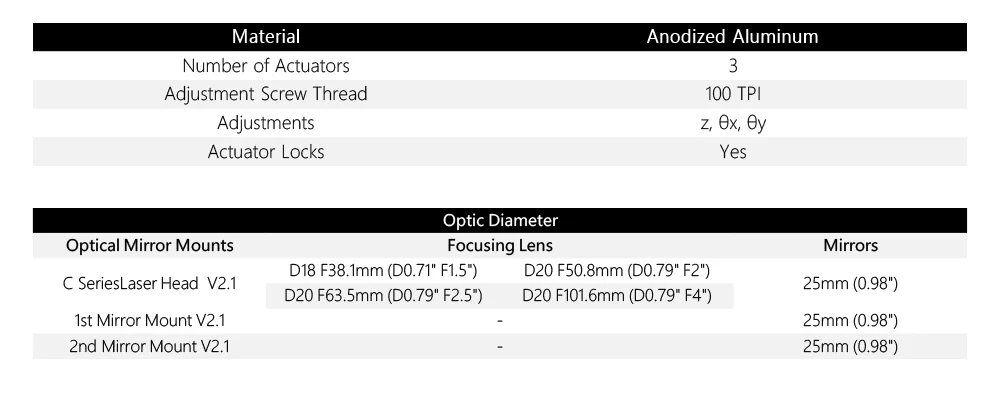 Два 2-го с головкой означает: 2-е зеркальное крепление * 2 + 1 Лазерная головка (без 1-го зеркального крепления)