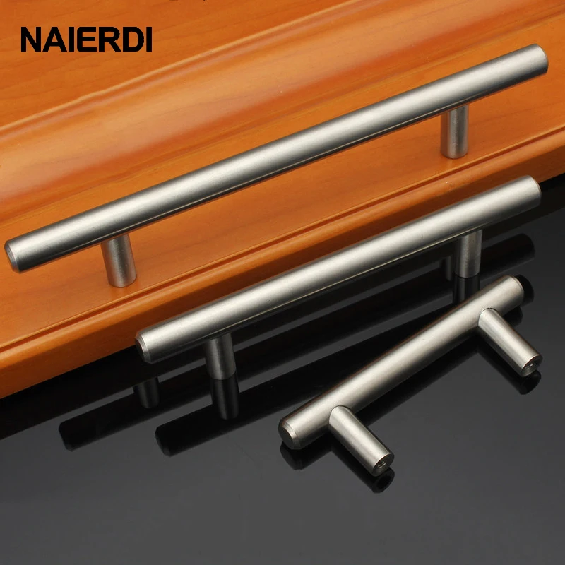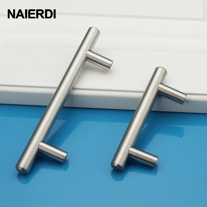 Ручки NAIERDI из нержавеющей стали, 4 24 дюйма, диаметр 12 мм, дверца кухонного шкафа T-образная прямая рукоятка, мебельная фурнитура
