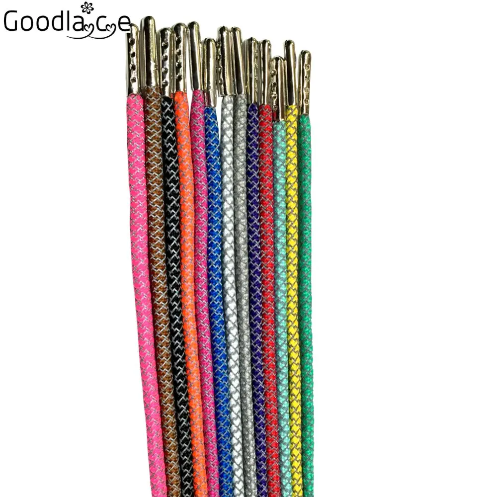Светоотражающие бегуны 3 м, круглые шнурки для ботинок, видимые безопасные шнурки для ботинок, шнурки с серебряными металлическими наконечниками