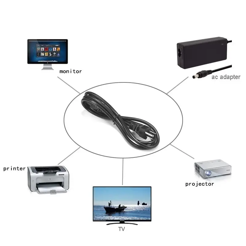 100% новый кабель питания стандарта США IEC C13 Калибр провода: 18AWG x 3 Скорость напряжение/ток: 250V 10A Материал проводника: медь Изоляционный материал: ПВХ Тип наконечника: вилка стандарта США Тип торца: IEC-320-C13 Длина кабеля (приблизительно): 1,5 мПосылка включает в себя: