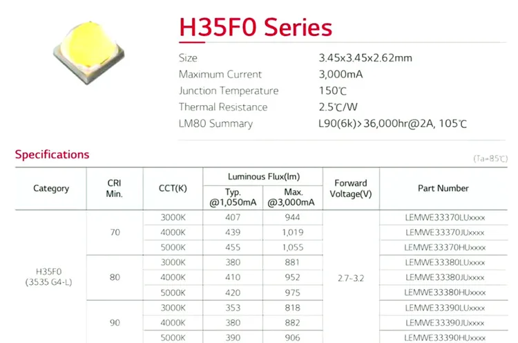 Светодиод LG работает на 2,1 А, поэтому поток версии LG составляет 680lm max.