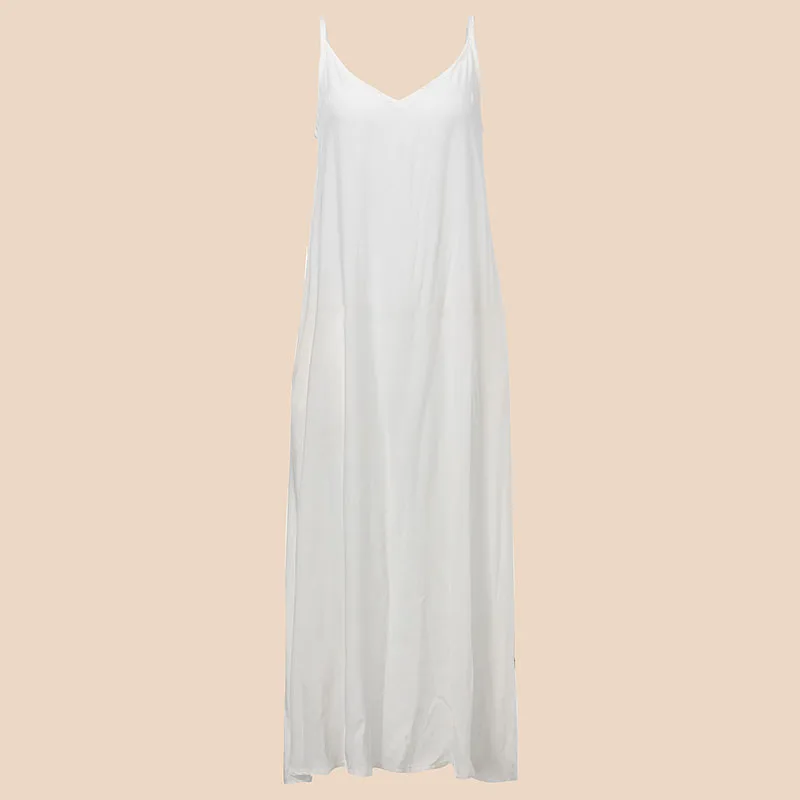 Женское платье без бретелек, с V-образным вырезом, без рукавов, повседневное, длинное, однотонное, белое, большого размера, лето 2021