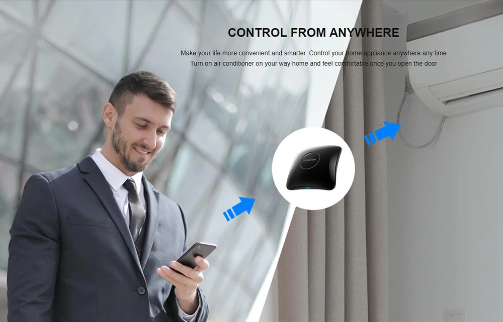 Пульт дистанционного управленияКондиционирование на большом расстоянии, Установка режима кондиционирования воздуха и одно нажатие для открытия телевизора, ТВ-приставки и т. д.Поймать все Инфракрасные приборыСовместимость с инфракрасными приборами: кондиционер, телевизор, ТВ-боксы, IP TV, аудио, DVD-проекторы, SLR-камеры и т. д. поддержка автономного обучения, управление большим количеством устройств.