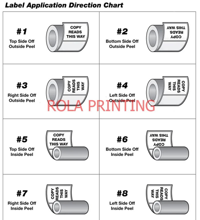 Если вы применяете этикетки машиной или имеете контрактный производитель, то вам нужно будет знать направление сматывания. Таблица направлений ветра, как показано ниже: