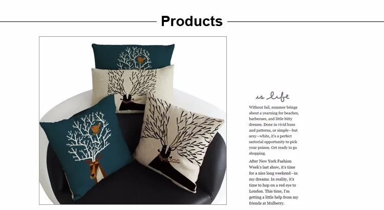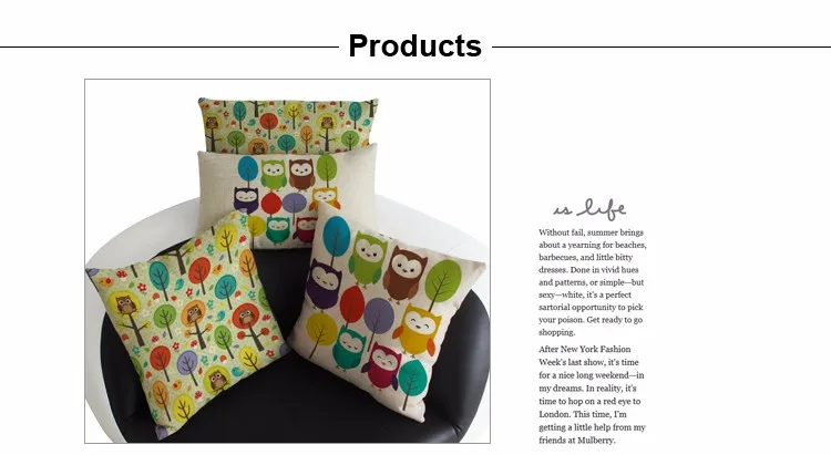 Подушки крышка выполнена из хлопка ткани , с хорошей проницаемостью , подушки крышка доступным , прочный и эффективным . Который выглядит более художественным и может предотвратить от царапин . Хлопок и полиэстер ткани -это тоже своего рода мягкий материал , Которые дают вам комфортную жизнь . Кроме того , красивый узор выглядит более элегантность и высшего сорта .