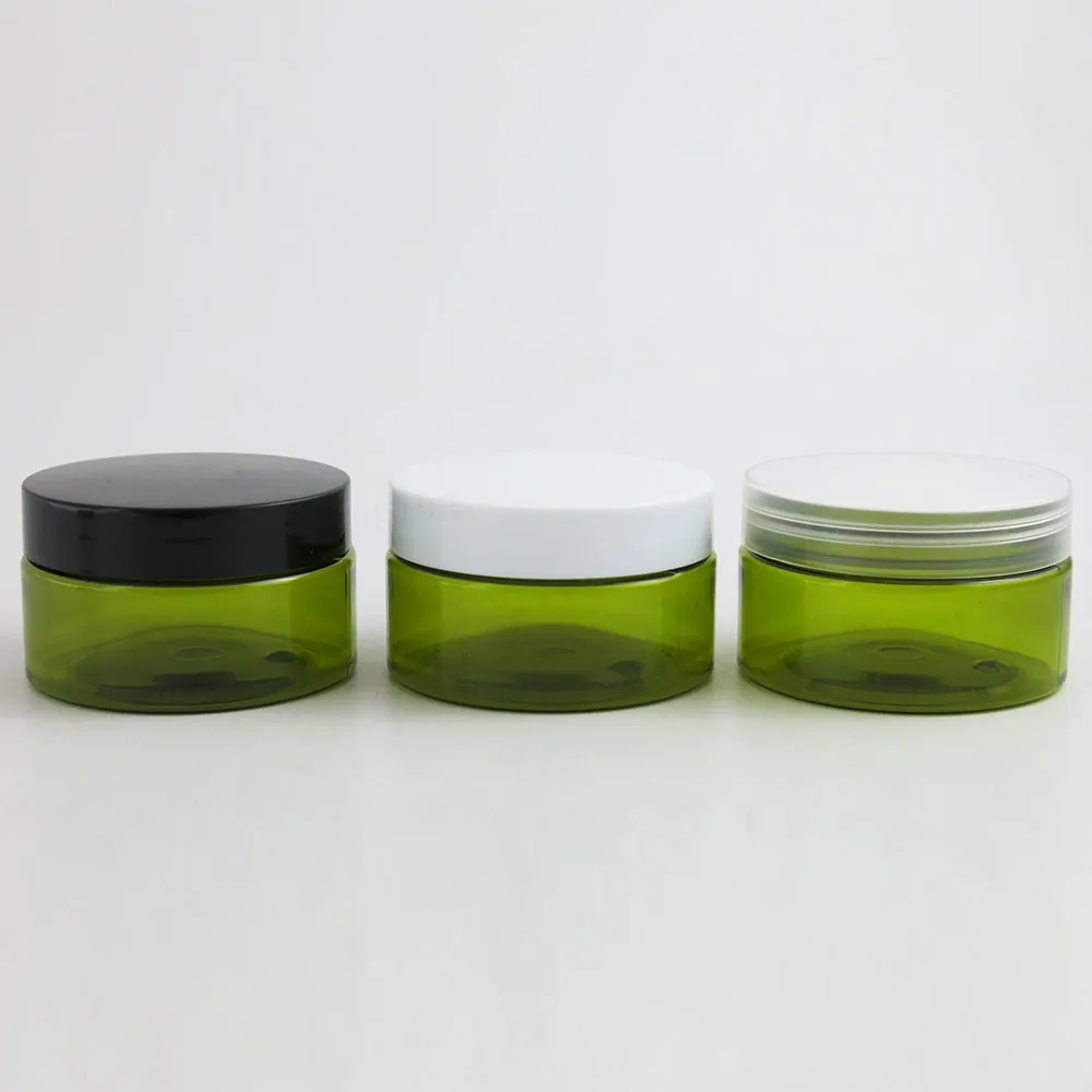 Зеленая пластмассовая баночка, баночка для крема, баночка для крема на 100 г, пластмассовый флакон для крема