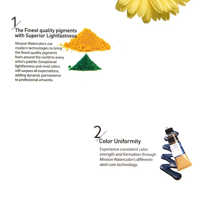 Профессиональные краски для художников Mijello Gold, 24 цвета, натуральный пигмент высокой концентрации