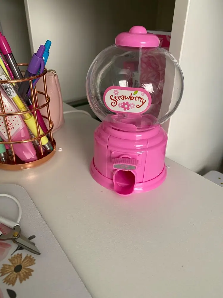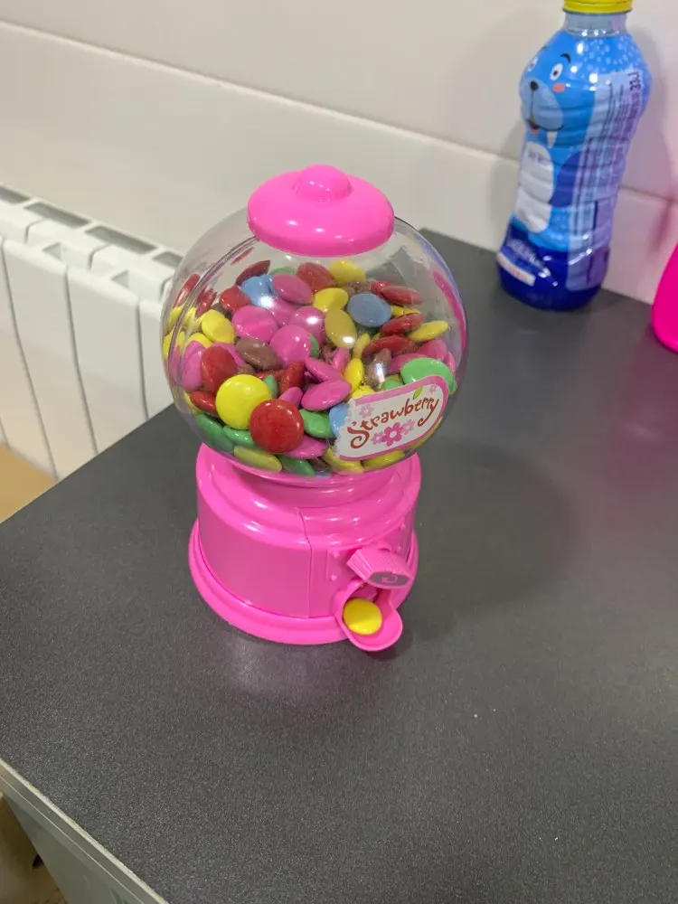 Очень милая машина для конфет. Он маленький, как я хотел. Я предпочитаю розовый цвет ребенка, а не ярко-розовый, но все равно нормально. Хорошее качество, но лучше быть нежным с ним, потому что прозрачный пластиковый купол может быть сломан. Очень доволен, и он прибыл очень быстро в Австралию. Я рекомендую продавцу