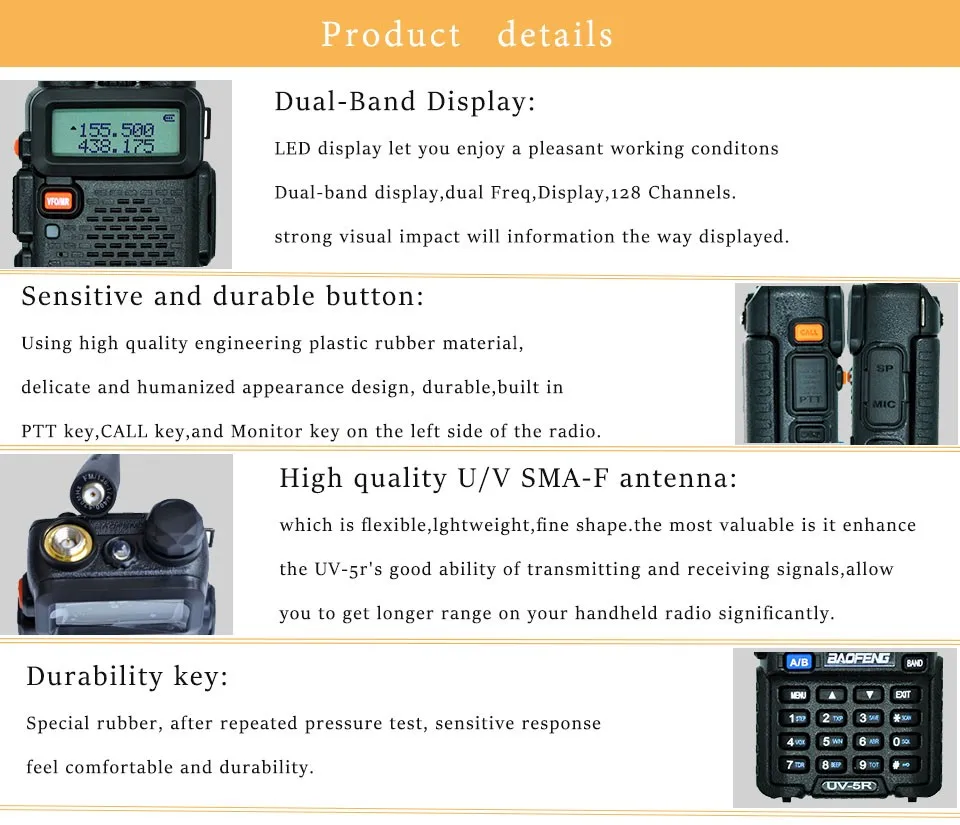 2Pcs Baofeng UV-5R Walkie Talkie CB Ham Radio Station 5W 128CH VHF UHF Dual Band UV 5R Two Way Walkie Talkie Hunting Radios