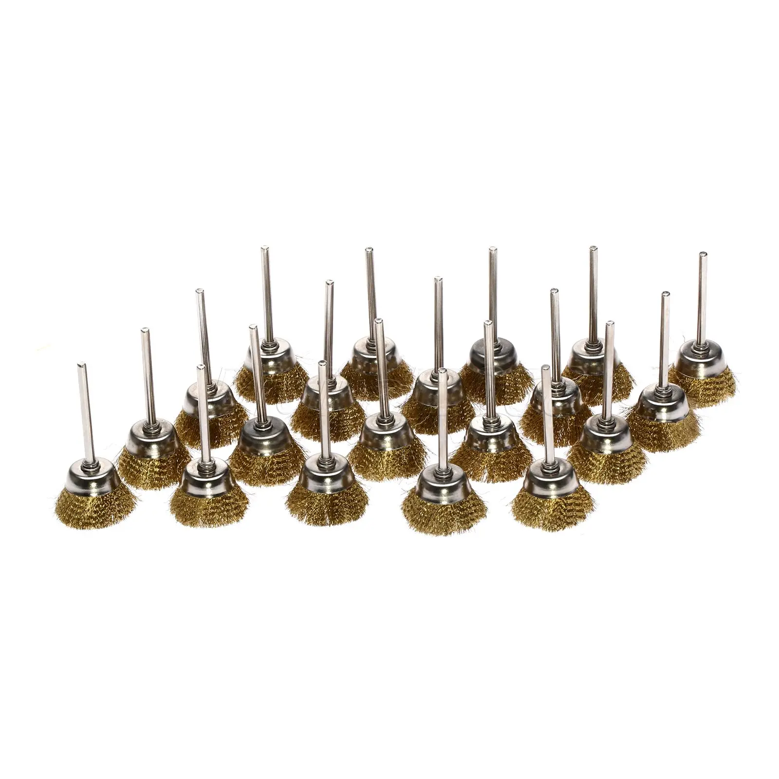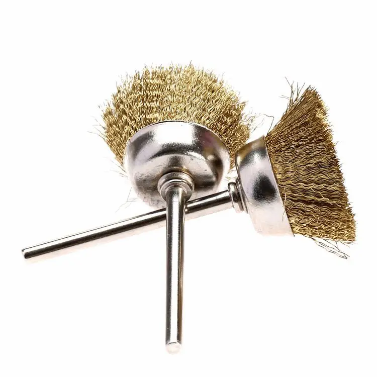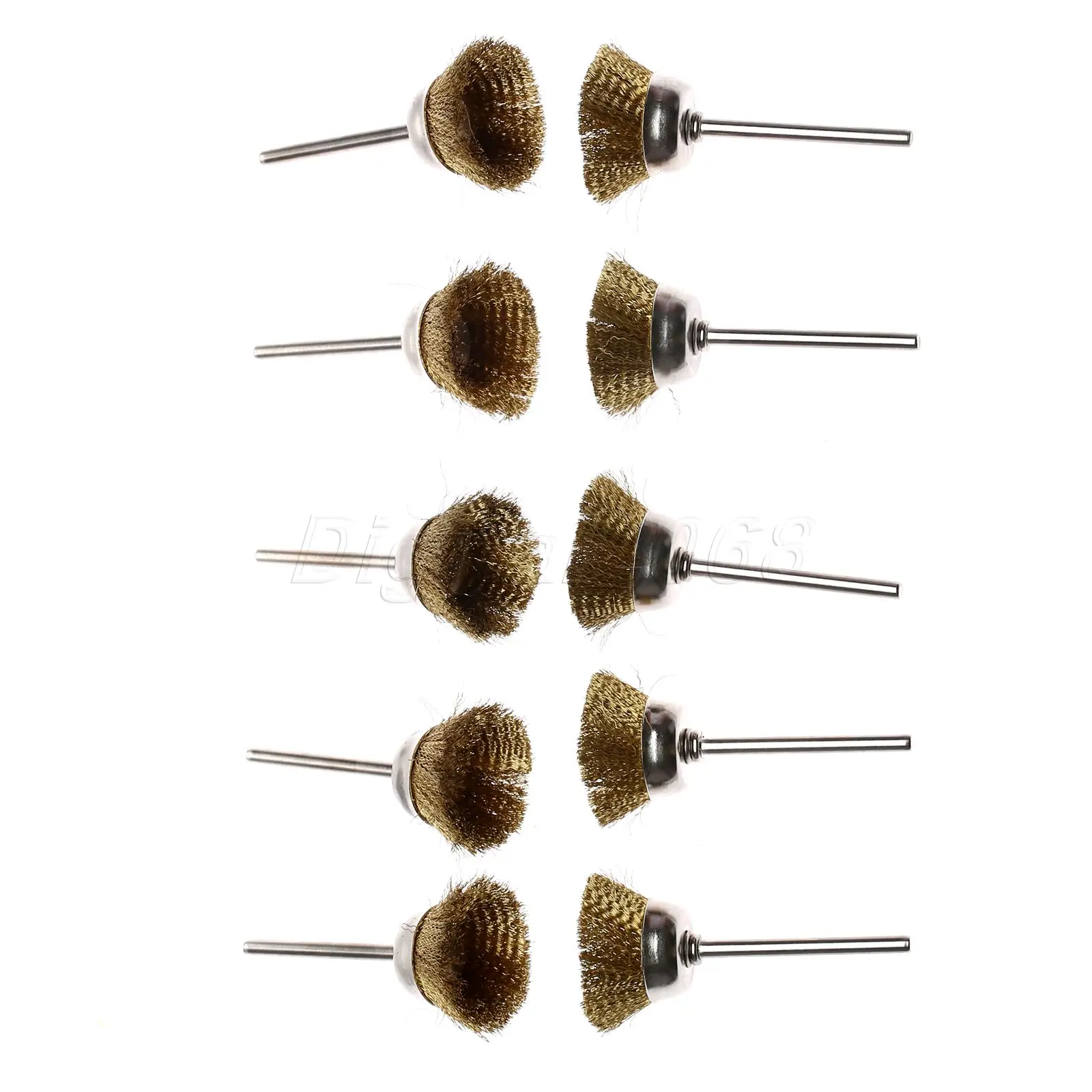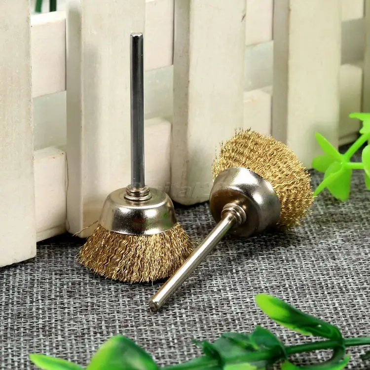 10 шт. 25 мм латунная стальная проволочная чашка кисти для Dremel вращающиеся инструменты шлифовальный станок диаметр оправки3 мм