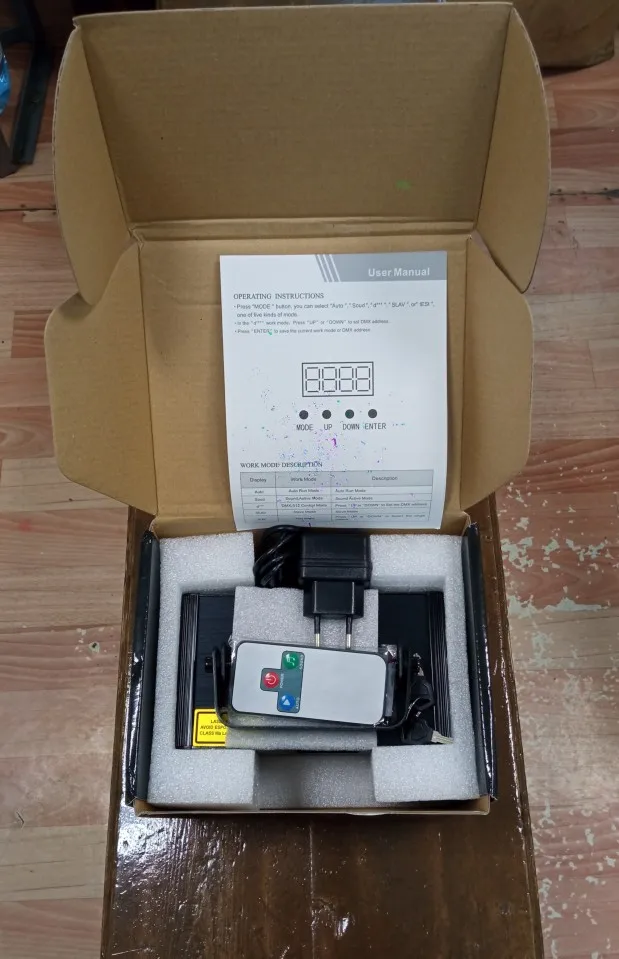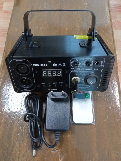 Лазер дошёл почти за месяц в Красноярский край, это нормально, заказывал перед новым годом, пришёл в аккурат после нового года, как закончились праздники, получил на почте. Качество лазера отличное! 5+, цвет желто-зелёно-красный. Проекция идет широкой линией, напоминает типа Северного сияния. чем больше удалённость, тем полоска шире. С дымом лучи не идут чёткой линией, а как бы рассеиваются, поэтому хорошо подойдёт для детских мероприятий, для детей, не бьёт по глазам, хотя яркий. Сзади крутилка яркости почему то не реагирует, звука не проверял, а в следующих моделях крутилку яркости вообще убрали, видать нет смысла. Хотя у меня есть такой же, только зелёный, 50 миливатт, и там всё работает, и на яркость, и на звук. Из плюсов этот более тихий чем зелёный, у обоих есть пульт, что очень удобно, и светят они довольно таки ярко! И как проекция замечательно, и с дымом тоже. Если применять с дымом, то лучше брать без широкой проекционной полосы, если без, то лучше как этот.