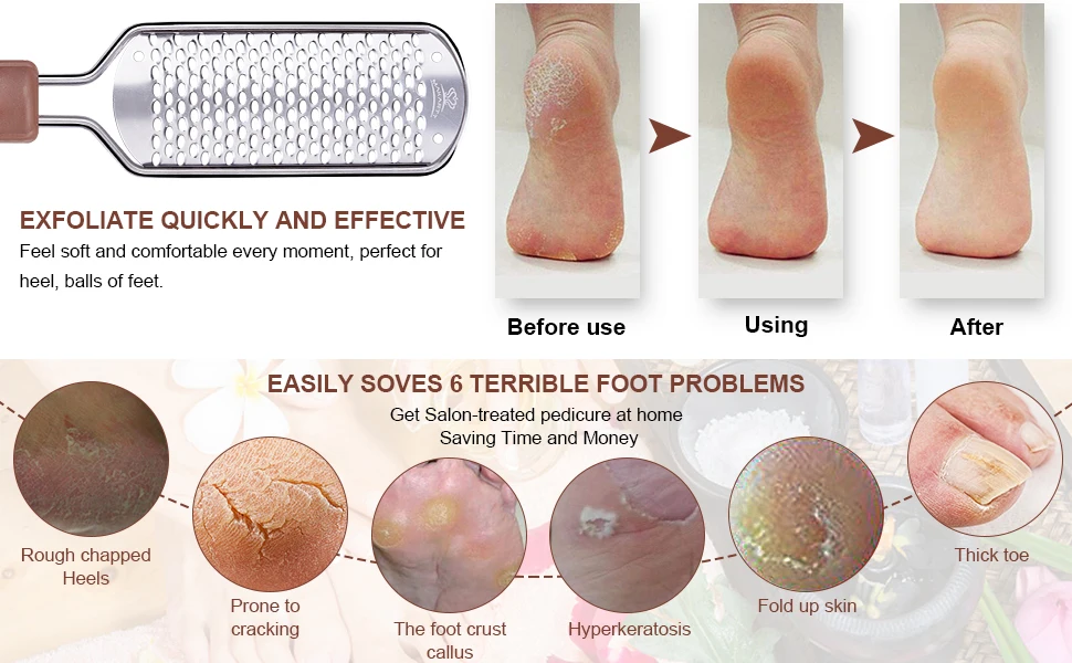 4.Большие плотные и острые отверстияОбеспечит вам немедленный результат по избавлению от корячьей, потрескивающей и рассыпчатой кусочки омертвевшей и мозолистой кожи, придавая вашу кислинку и удивительную гладкость.