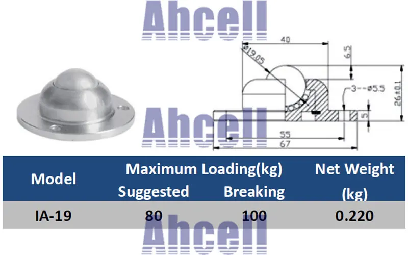 Сверхмощный нижний фланцевый шарикоподшипник IA19, ролик Ahcell, грузоподъемность 80 кг, Магнитный блок переноса шариков icon star icon star icon star icon star icon star