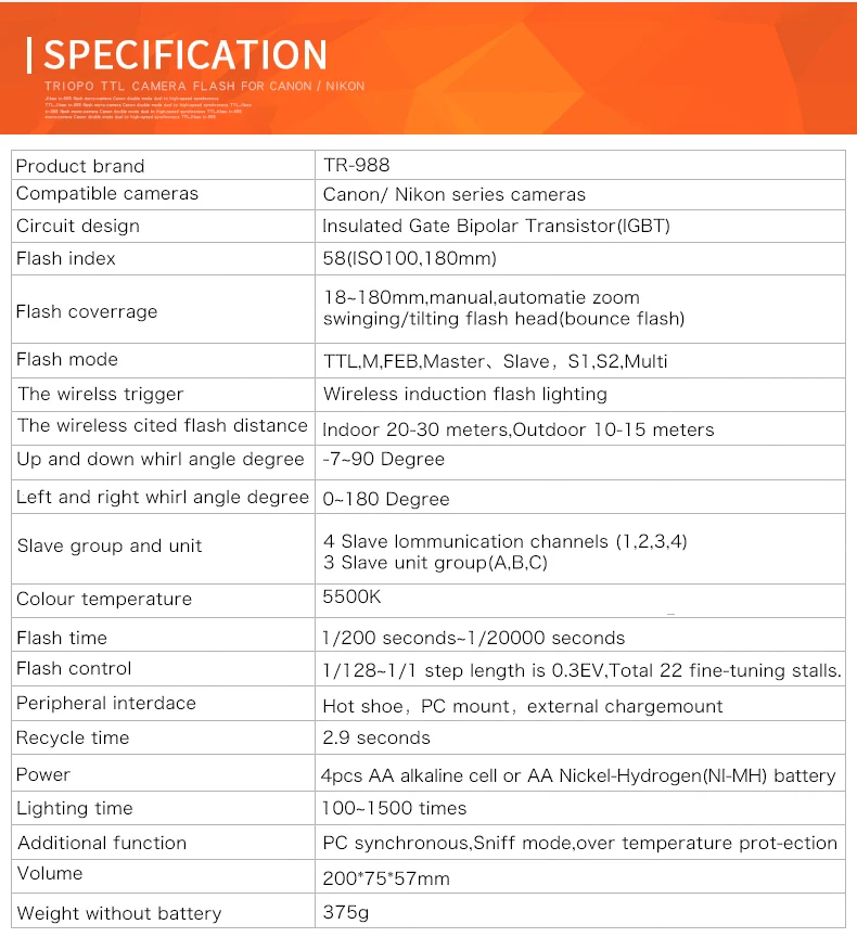 Профессиональная вспышка TRIOPO TR-988, вспышка для камеры Speedlite TTL с высокоскоростной синхронизацией для цифровых зеркальных камер Canon, Nikon