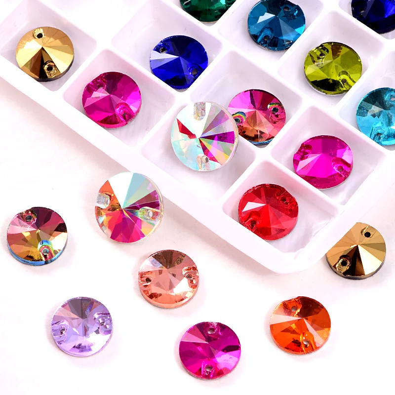 29 цветов, 6 размеров, круглые шитье риволи Стразы, стразы для пришивания, плоские стеклянные круглые стразы для одежды Y2818