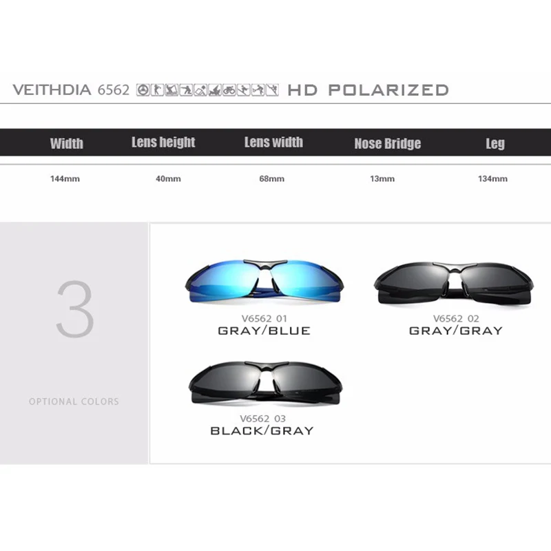 Солнцезащитные очки VEITHDIA, спортивные, дизайнерские, алюминиевые...