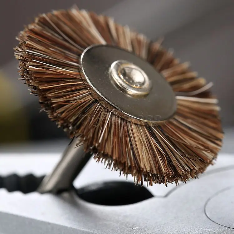 5 шт. серебристого цвета хвостовик коричневого волокна шлифовка полировка BЗубчатая щетка для бура, вращающиеся щетки Dremel