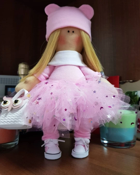 Хорошая ткань для куколок. Почти не тянется, не сыпется. Для куколок с рисованным лицом конечно не идеальна, поскольку фактура не гладкая, но других недостатков в ней я не вижу. Этот тон хорош для светловолосых девчушек ) Отправлено быстро, пришло в срок