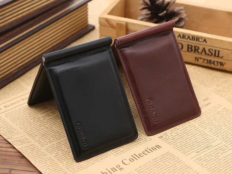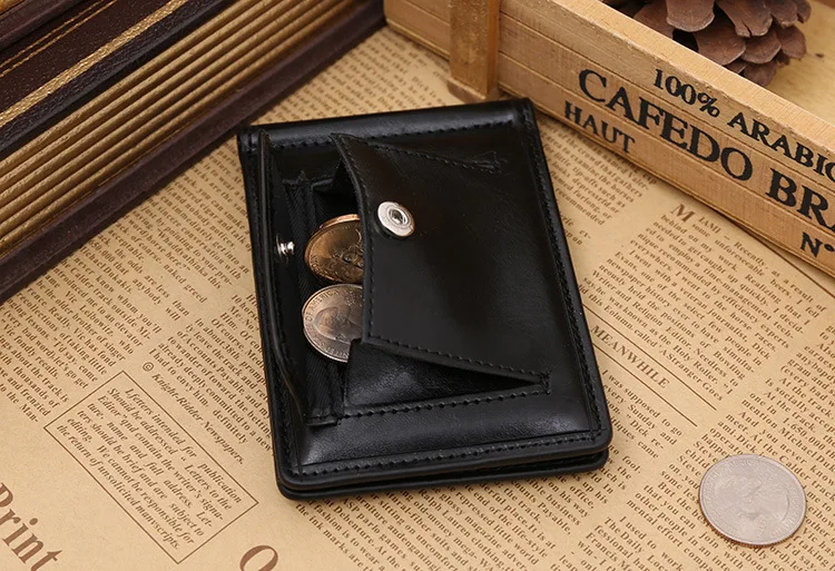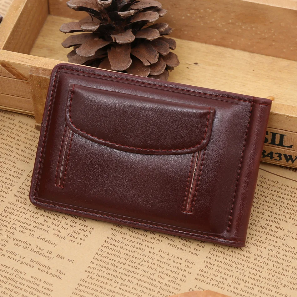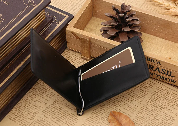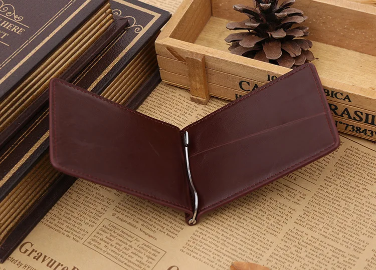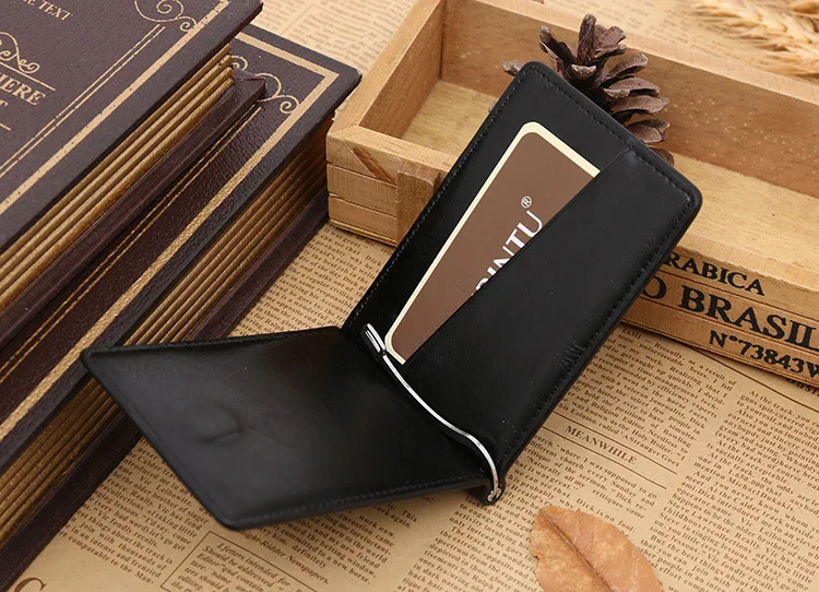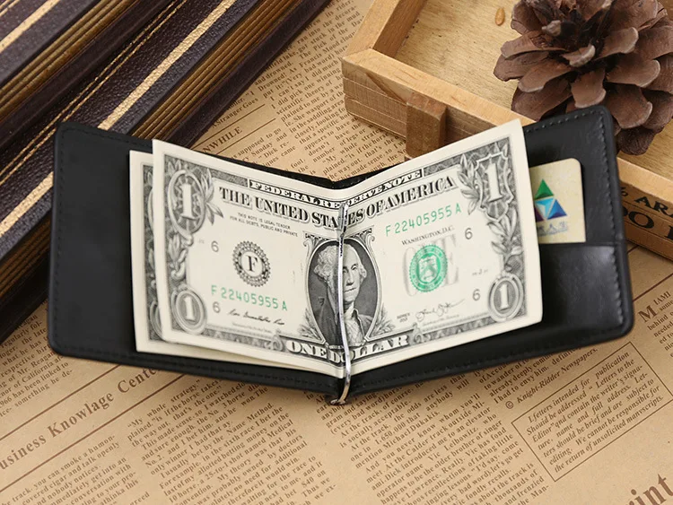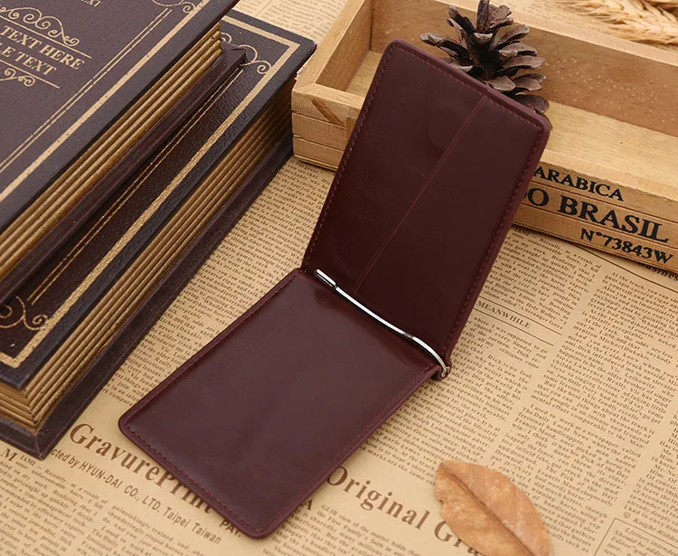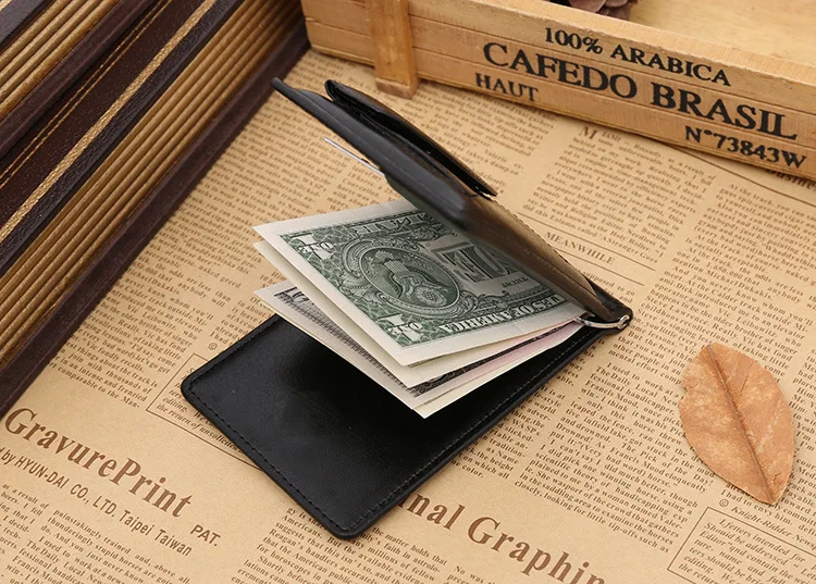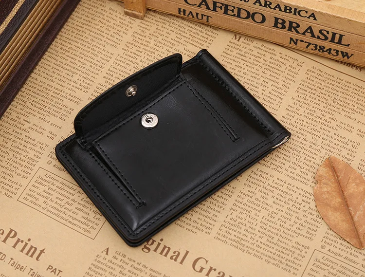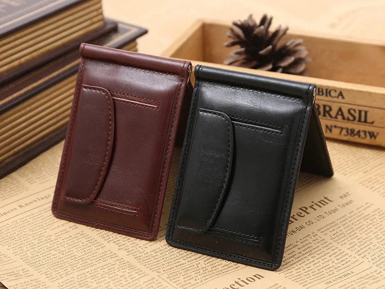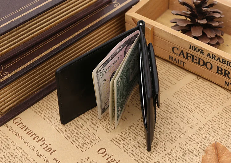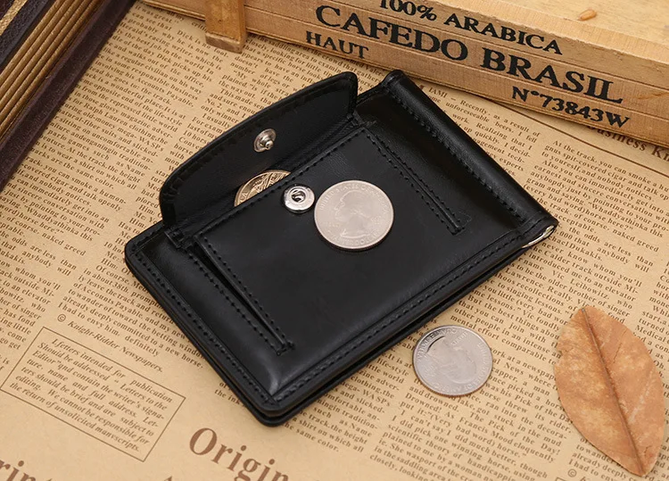 Качественные Классические Модные мужские Зажимы для денег черные кофейные Яркие Кожаные 2 раза открывающиеся Зажимы для денег с кармашком для монет бесплатная доставка