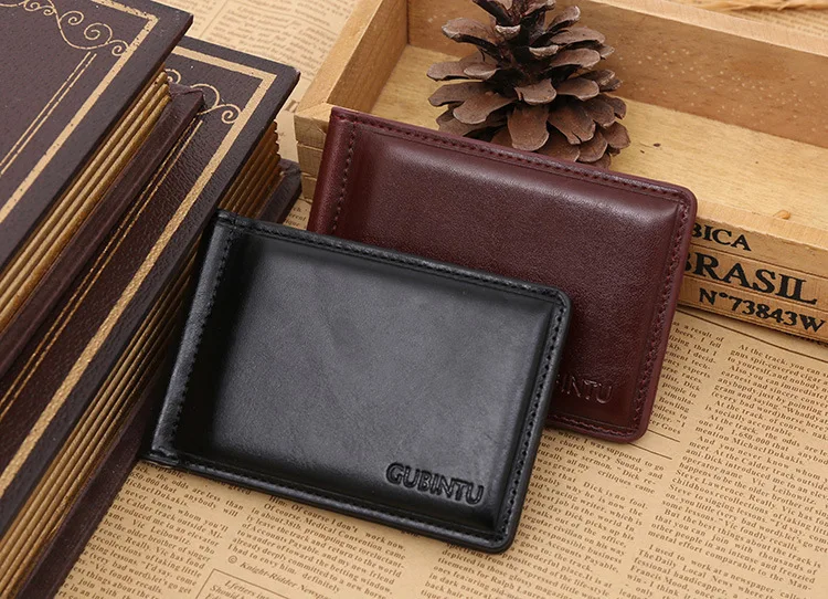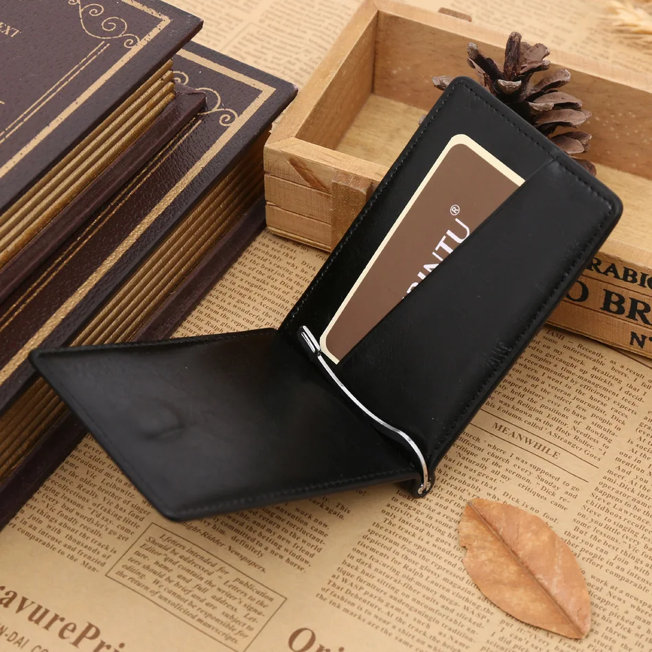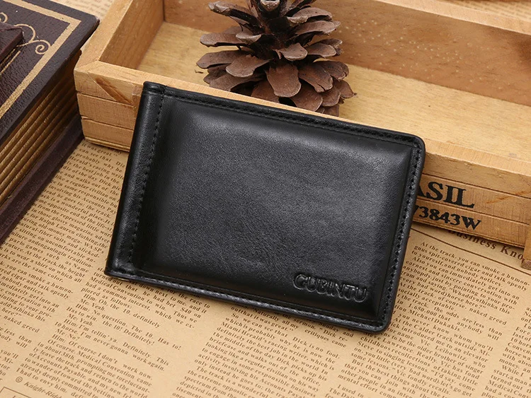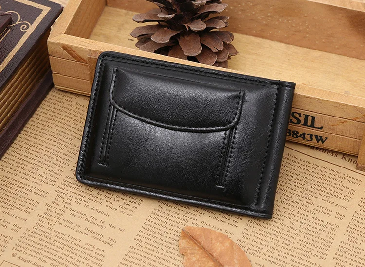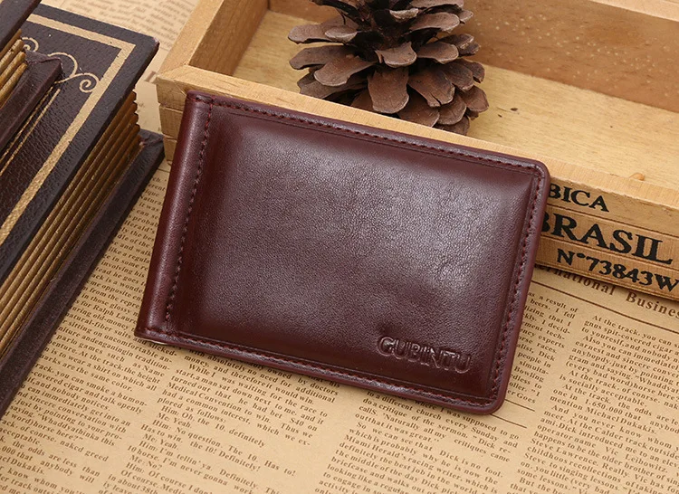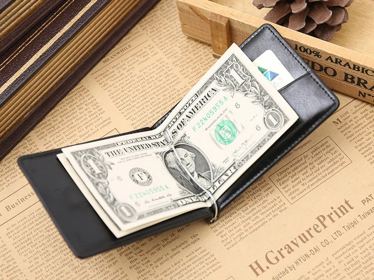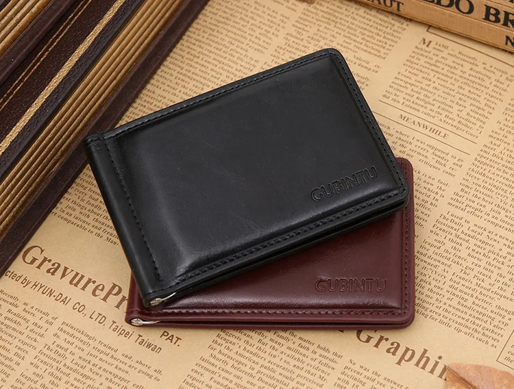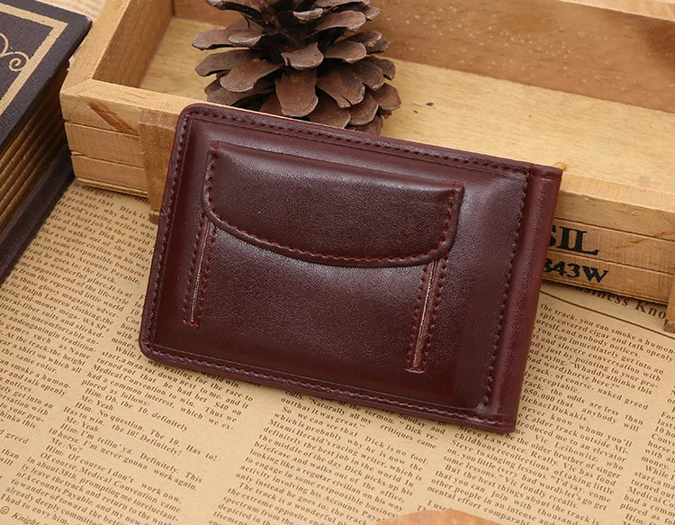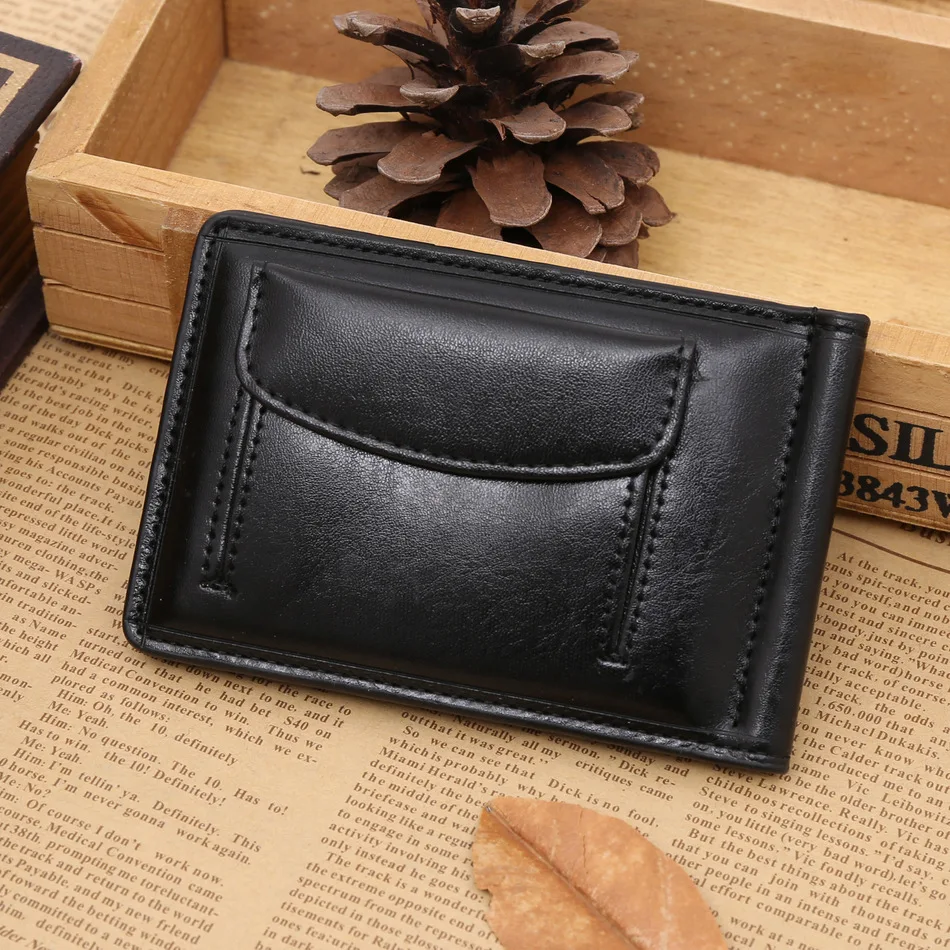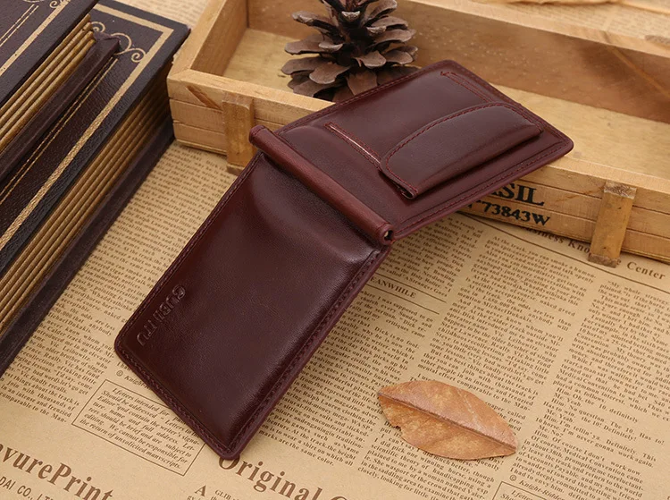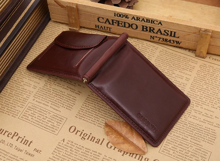 Качественные Классические Модные мужские Зажимы для денег черные кофейные Яркие Кожаные 2 раза открывающиеся Зажимы для денег с кармашком для монет бесплатная доставка