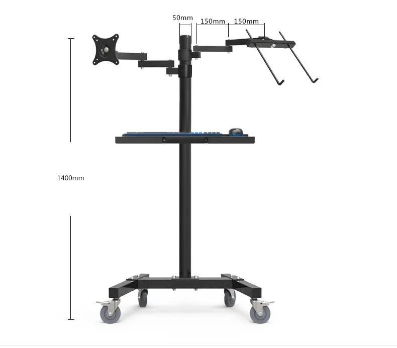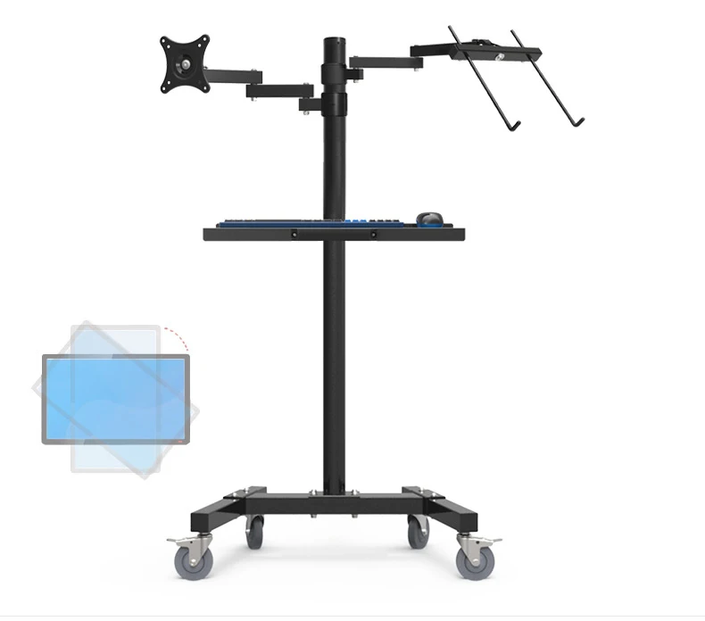 PS подставка с двойным креплением тележка для монитора и ноутбука напольная подставка подвижная тележка