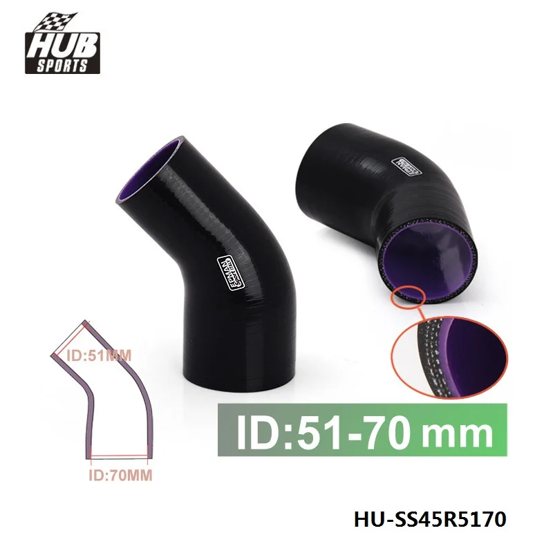 Черный силиконовый шланг, Колено 45 градусов 45 мм 1,75 дюйма для T...