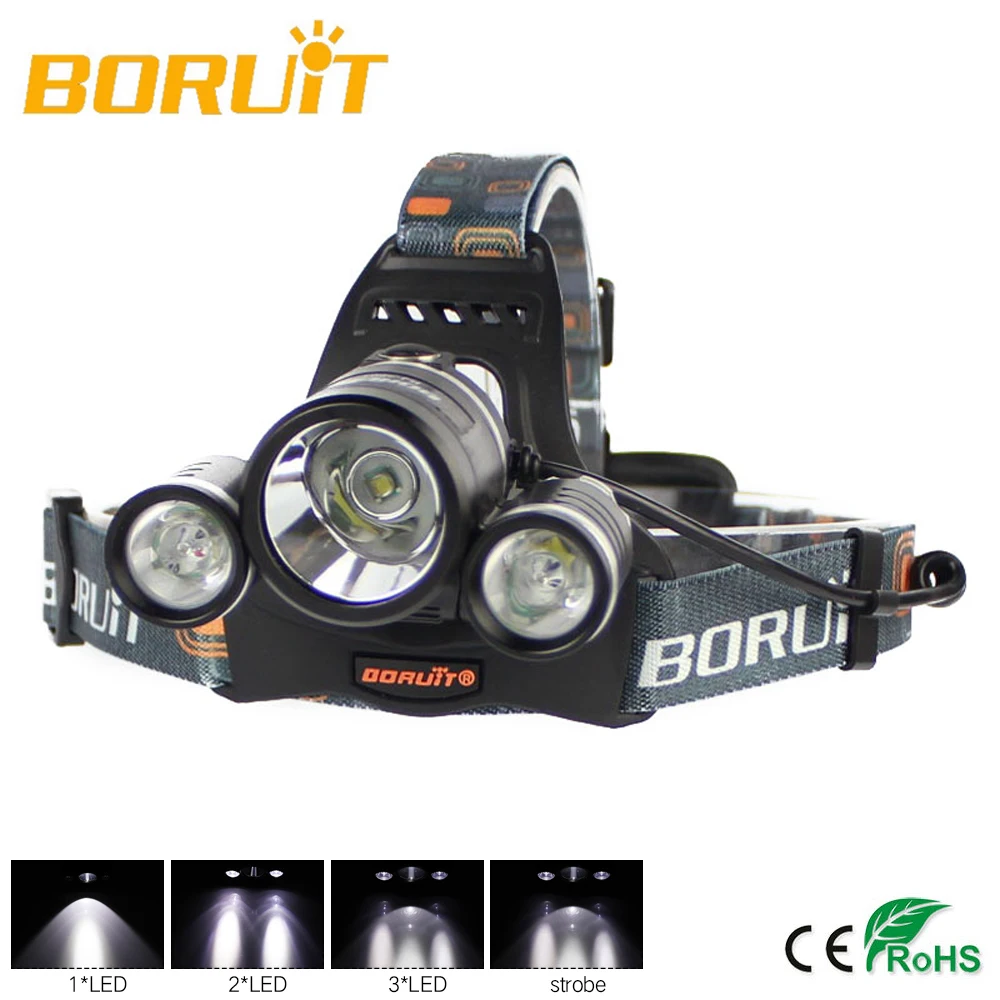 Налобный фонарь BORUIT, светодиодный водонепроницаемый фонарь с 4 режимами, XML L2, Micro USB, 6000 люмен