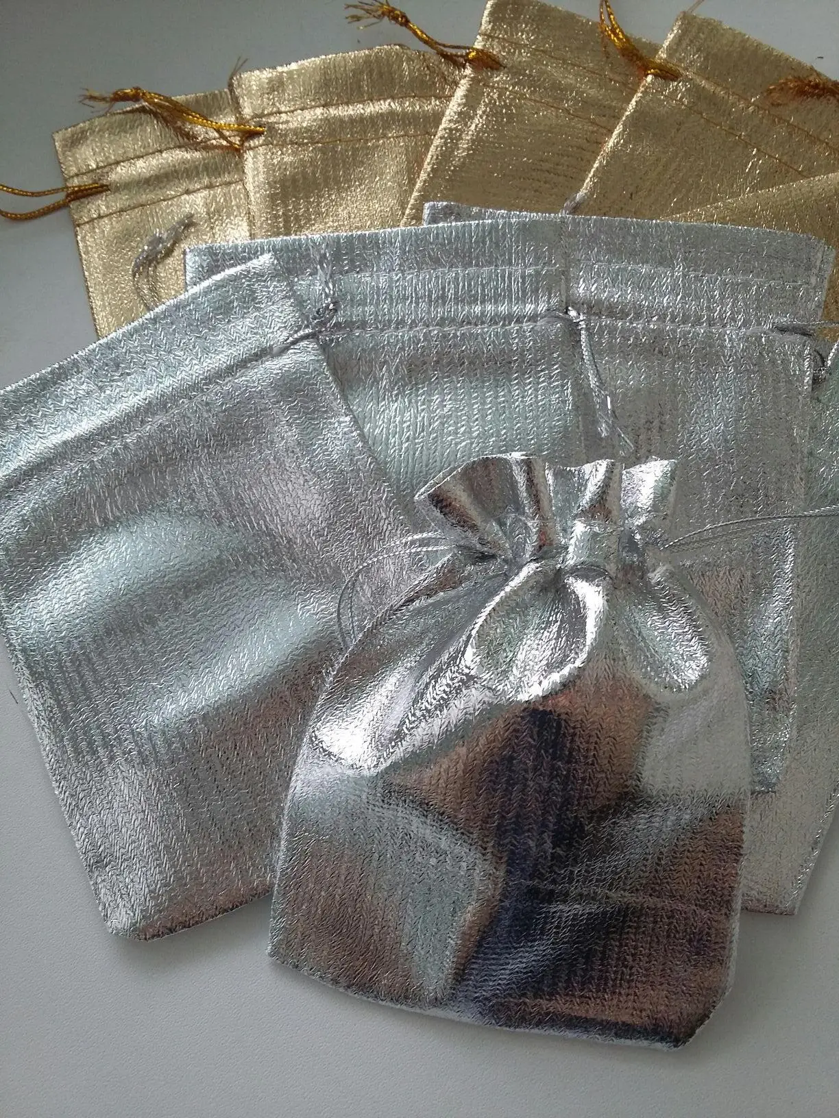 Тканевые упаковочные мешки 10 шт.пакет, 7x9 9x12 10x15 см, серебристые, золотистые, на шнурке, свадебные, подарочные пакеты и мешочки для ювелирных изделий