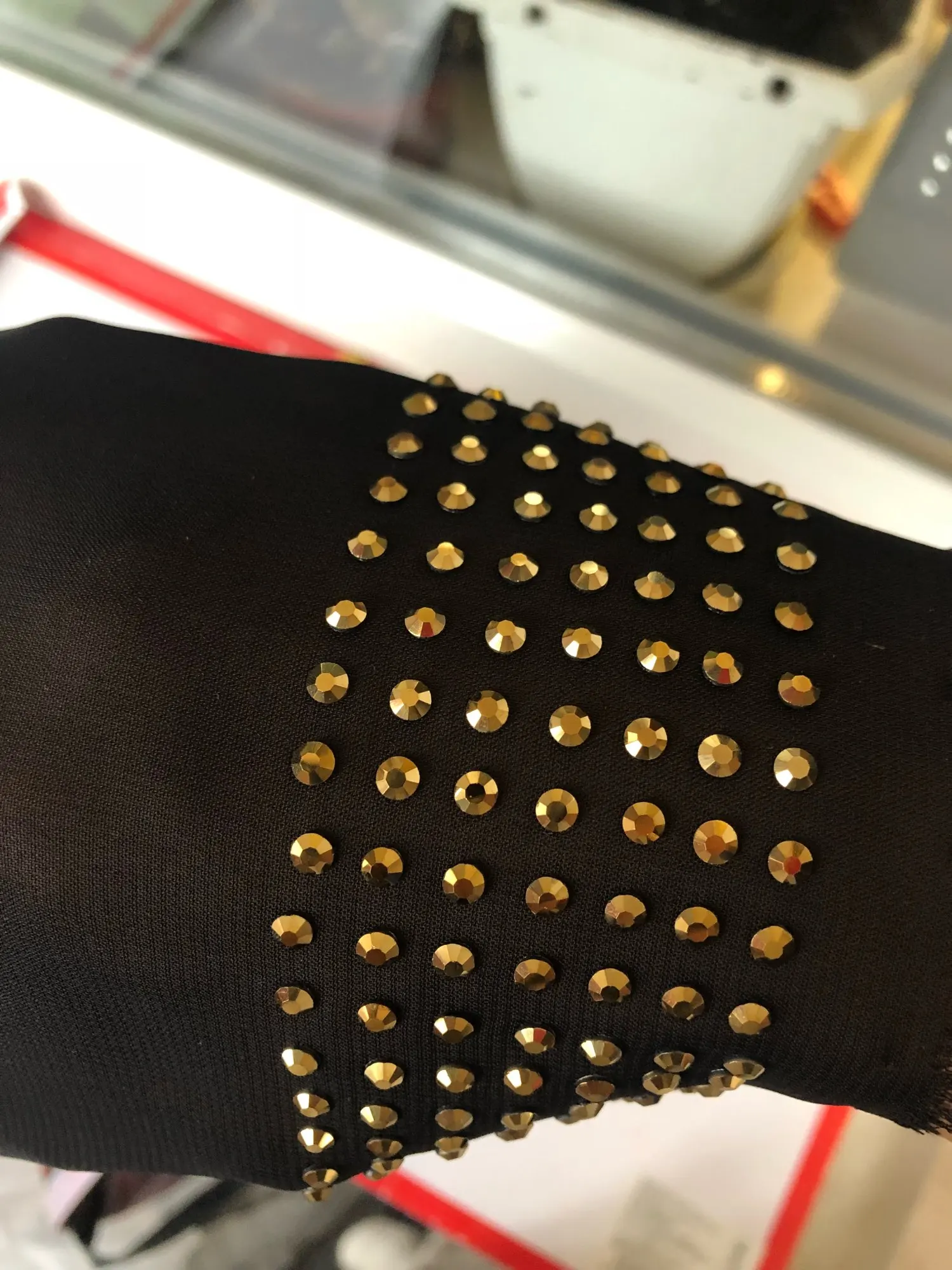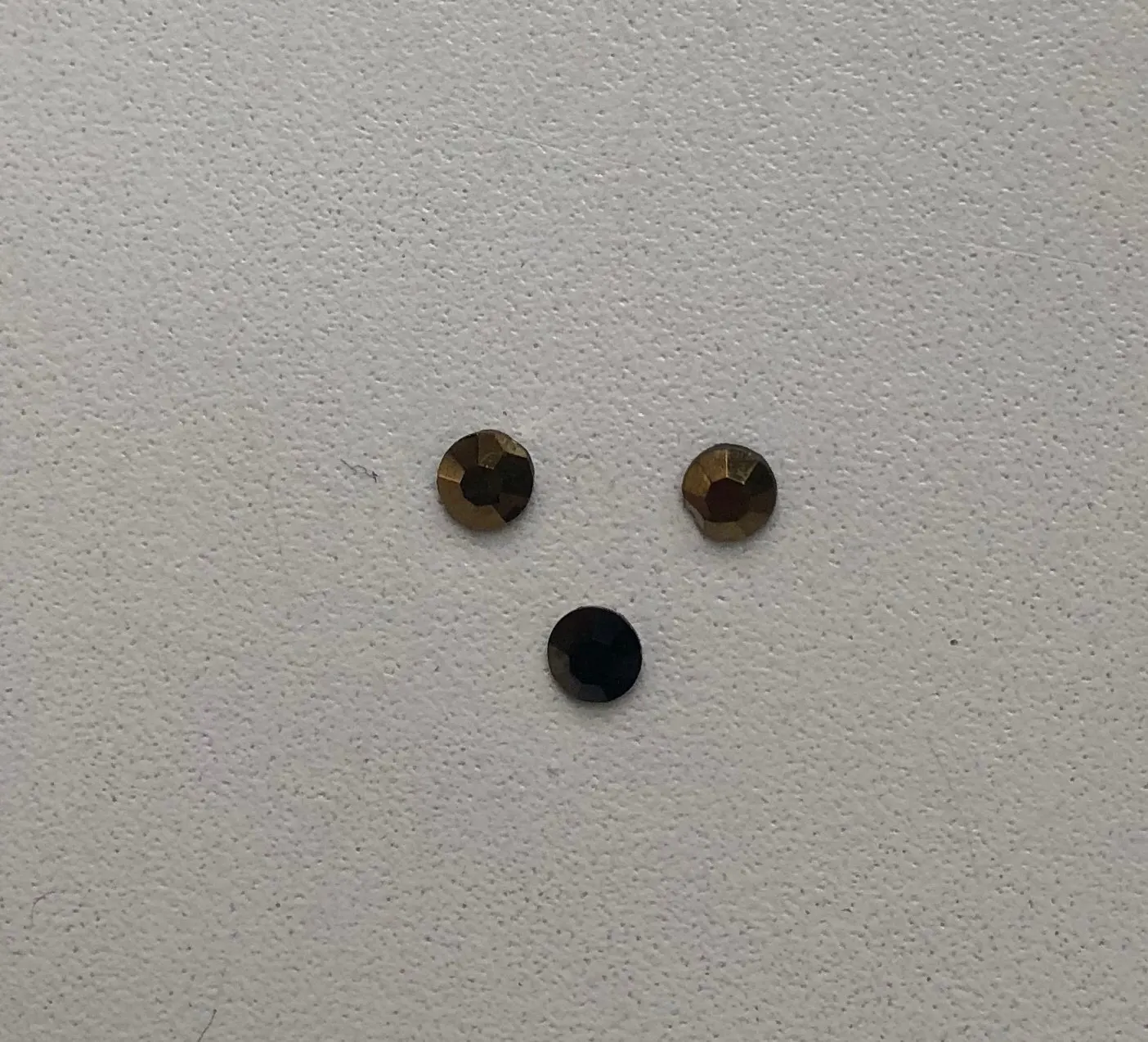 Хорошие стразы. Искала светлое золото металлик, эти темные. На моих фото именно тот цвет, как в жизни. Из половины пакета страз попались три бракованных: одна не окрашена, две скошенный край (видно на фото). Остальные не проверяла. Клеятся хорошо (утюгом через мокрую тонкую х/б ткань). Продавец отправил быстро. Рекомендую.