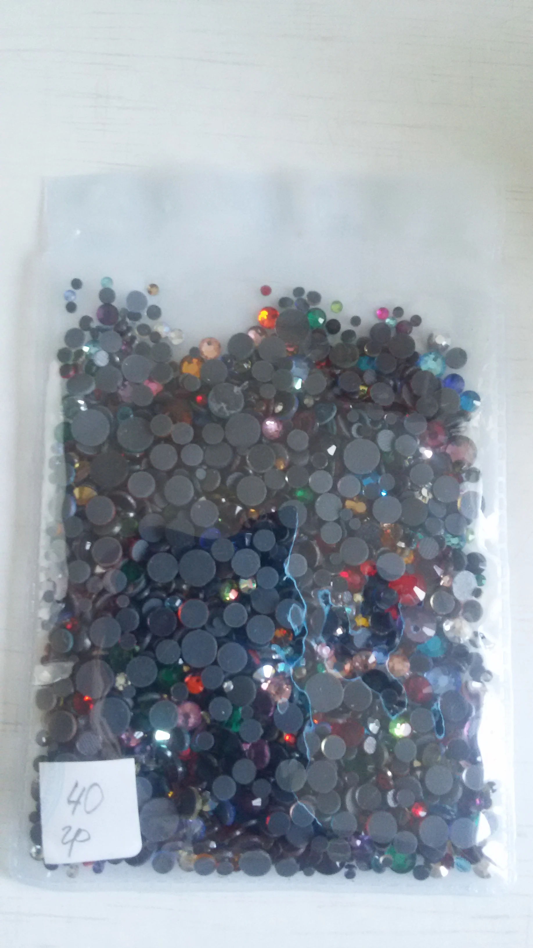 Хорошие стразы. Разнообразие цветов (примерно 26 цветов). Вес упаковки 40 гр. Количество и фактический размер страз: S30 (6.1 мм.) - 42 штуки, S20 (4,7-4,8 мм) - 185 шт, S16 (3.7 мм) - 299 шт, S10 (2,7 мм) - 486 шт. S6 - не считала, но уверена, что 600 штук там есть. Так что заявленные 1600 штук в упаковке есть, что приятно. Размер страз немного меньше заявленного. Заказываю у этого продавца не первый раз. Спасибо продавцу.