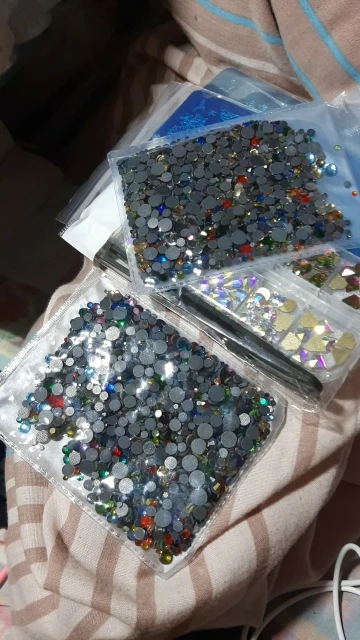 Получил второй заказ первый был объединен и потерялся вместе со штампованными пластинами, и я потерял все деньги, потому что логистика не показывает конечный пункт назначения, но только то, что он был доставлен... на этот раз и Очень красивые цвета не открываются, чтобы увидеть качество, но выглядят все хорошо за эти деньги это отличная покупка. Пятнистый ab Блеск и пламя в очень крошечных камнях, но основной объем 95% выглядит как нормальный цвета