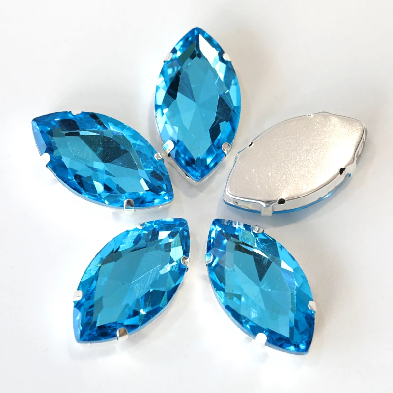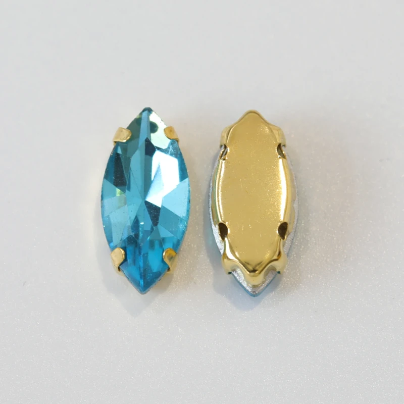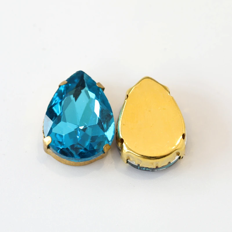 Аквамарин, пришивные стразы с золотомсеребром, с плоским основанием, в форме капли, с голубыми звездами, стразы для свадебного платья Y3500