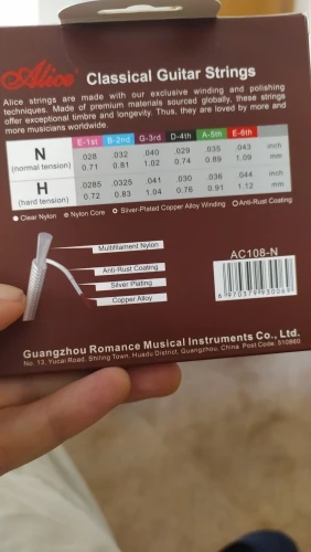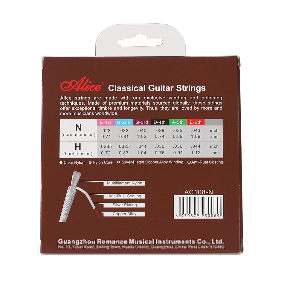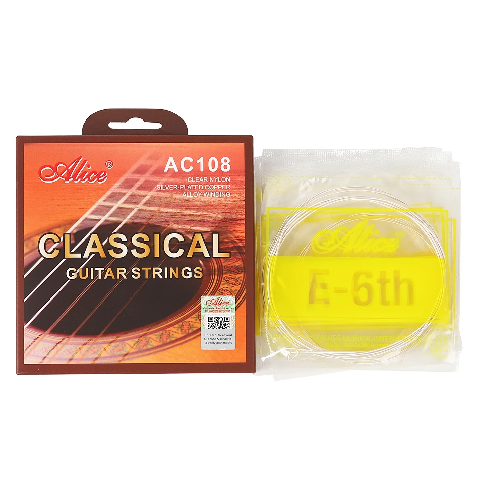 Струны для классической гитары Alice AC108, нейлоновые, с серебряным покрытием, 6 струн
