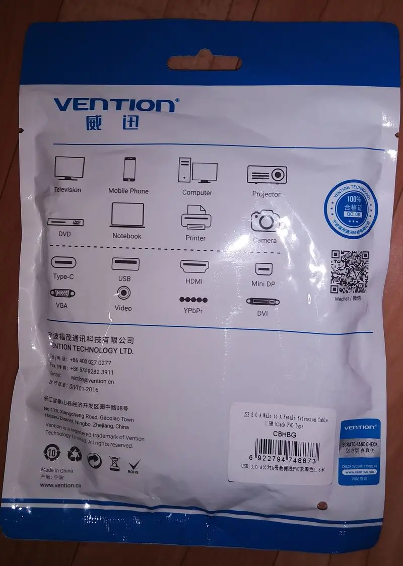 Продукция Vention очень качественная. Удлинитель действительно USB 3.0 и соответствует характеристикам в описании. На упаковке есть стираемая область с кодом, который можно проверить на сайте производителя. С купонами из группы вконтакте GXSmart за удлинитель 1м заплатил всего 124 руб. (или 1.65$) - отличная цена. Есть смысл покупать со скидками.